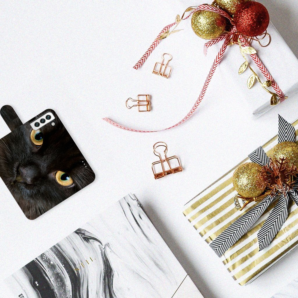 Samsung Galaxy S22 Telefoonhoesje sluit met magnetische sluitclip Design Zwarte Kat