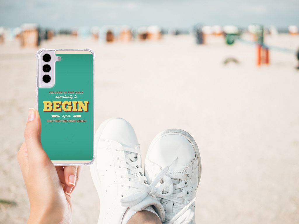 Ben je op zoek naar een uniek telefoonhoesje voor je Samsung Galaxy S22? Dan ben je bij B2C Telecom aan het juiste adres! Speciaal voor jou hebben we dit prachtige Quote Begin design in onze collectie hoesjes opgenomen. Het design wordt bedrukt op een Telefoonhoesje met tekst en is gemaakt van flexibel rubber. Het hoesje is perfect voor de actieve smartphonegebruiker door de opstaande randen/hoeken. Denk aan mensen die veel sporten, reizen of wandelen en net iets meer zekerheid willen als het op hun geliefde telefoon aankomt. Het design wordt alleen aan de bovenkant van het hoesje bedrukt en de randen blijven transparant. Aan de zijkanten zijn uitsparingen gemaakt waardoor je met gemak alle knoppen en poorten kunt bedienen. Wij adviseren om dit hoesje in combinatie met een screenprotector te gebruiken voor een langere levensduur van je telefoon. Wil je dit hoesje nog iets extra's geven? Voeg dan gratis je naam of een quote toe! Is dit design hoesje toch niet helemaal wat je zocht? Ontwerp dan zelf een hoesje in ons ontwerpprogramma.