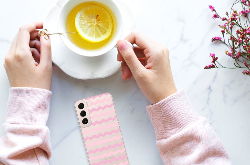 Dit design hoesje met Waves Roze afdruk is speciaal op maat gemaakt voor jouw telefoon. We hebben verschillende kleurstellingen gebruikt in het design, zodat de case er spannend en leuk uitziet. Dit licht roze hoesje met verschillende soorten golven ziet er opwindend uit. Het Samsung Galaxy S22 TPU bumper wordt in ons eigen magazijn bedrukt, vandaar dat we de kosten zeer laag kunnen houden. Wij kunnen het duurzame hoesje met licht roze golven zeer snel leveren. Heb jij altijd al een design hoesje met verschillende soorten licht roze willen hebben? Deze TPU case met licht roze golven wordt alleen aan de bovenkant bedrukt en is zeer flexibel. De randen van het hoesje met licht roze golven blijven transparant en worden niet bedrukt. Met dit licht roze hoesje past jouw telefoon altijd in je broekzak.
