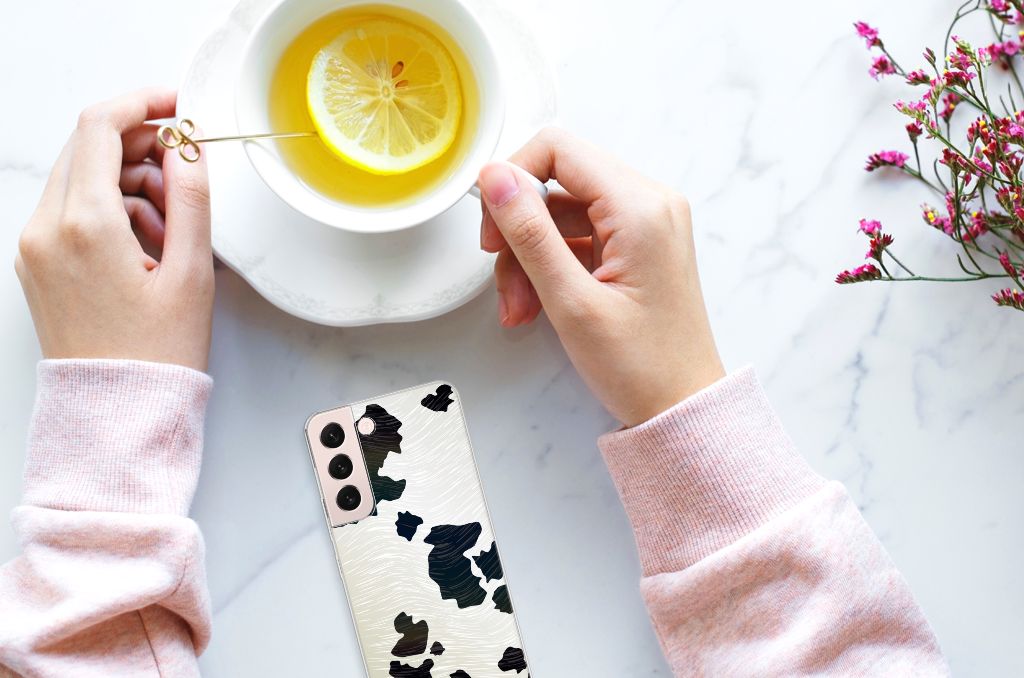 De vlekken op de huid van een koe hebben een camouflage functie. Met deze Samsung Galaxy S22 TPU Hoesje met Koeienvlekken hoef je je geen zorgen te maken dat je smartphone schade oploopt. De koeienvlekken zetten we op een tpu case op het moment dat jij je bestelling plaatst. Hierdoor krijgt jouw telefoon een print van koeienvlekken van zeer hoge kwaliteit. Ook omdat we het bedrukken van deze case geheel zelf doen. Jouw telefoon is vooral aan de achterkant en zijkanten goed beschermd. De print van koeienvlekken komt op de bovenkant van het hoesje te staan, de randen blijven doorzichtig. Roofdieren zijn niet geïnteresseerd in koeien dankzij de vlekken op hun huid. Deze beschermende werking heeft ook jouw hoesje met koeienprint.