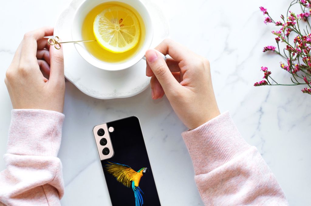 Dit design hoesje met Papegaai tegen een zwarte achtergrond is een zeer flexibele bescherming voor jouw smartphone. Dit komt vooral omdat deze print op een tpu case staat. Dit is een zeer buigzaam hoesje, dat de telefoon vooral aan de achterkant en zijkanten beschermt. De bovenkant van de Samsung Galaxy S22 TPU Hoesje wordt bedrukt met deze schitterende print. De zijkanten blijven doorzichtig. Papegaaien zijn erg sociale vogels die voldoende aandacht en gezelschap nodig hebben. Als je er voor kiest om een papegaai aan te schaffen, is het een goed idee om een koppeltje te nemen. Koop je meerdere tpu cases met een papegaai, dan ga je automatisch minder betalen per hoesje. Wij hanteren een systeem van bundelkorting. Dus koop dit hoesje met opstaande randen voor een spotprijs.