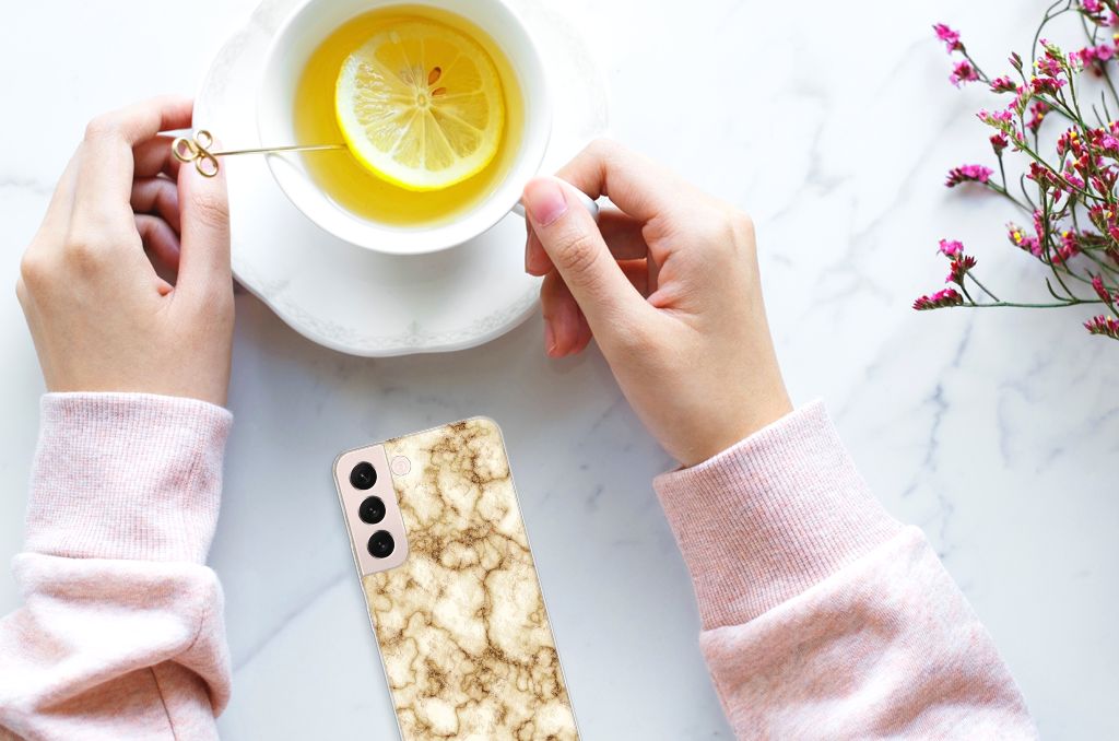 Deze Samsung Galaxy S22 TPU Siliconen Hoesje met Marmer Goud is het waard om een blokje voor om te rijden. Dit is overigens niet nodig. Als je het hoesje met goud marmer nu bestelt heb je het zeer snel in huis. Je kunt er bij wijze van spreken thuis op gaan zitten wachten. Je hebt diverse soorten marmer. We hebben enkele fraaie kleuren op onze hoesjes gezet, zoals in dit geval het gouden marmer. Het goud marmer wordt bedrukt op de achterkant van de tpu case, die beschikt over alle nodige uitsparingen waardoor je alle knoppen en poorten van je smartphone kunt bedienen. Verder is de case met goud marmer gemaakt van zeer flexibel materiaal. De rijkheid aan kleuren en varianties in afwerking is een schitterende eigenschap van marmer. Dit tpu hoesje met goud marmer heeft ook veel schitterende eigenschappen en is de ideale bescherming voor jouw smartphone.