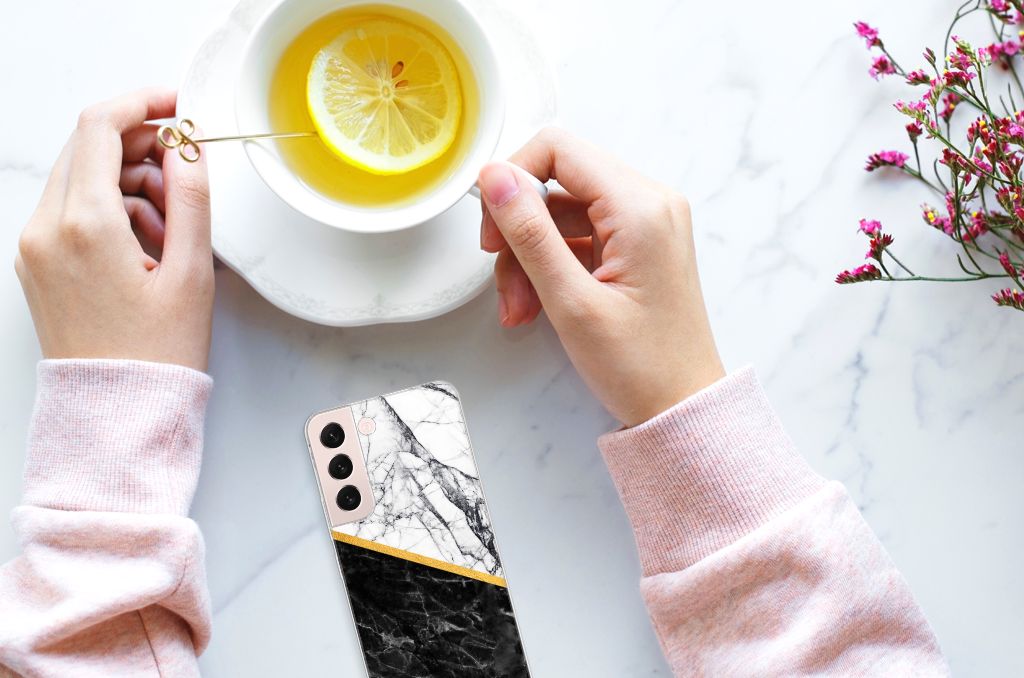 Dit design hoesje met zwartwit marmer is zeer geschikt voor jouw kostbare telefoon. Vanwege zijn prachtige lichtval en vastheid is marmer zeer gewild als bouwmateriaal. Op jouw smartphone kun je lange tijd bouwen als jij kiest voor deze hele mooie Samsung Galaxy S22 TPU Siliconen Hoesje. Naast het zwart-witte marmer zijn er de diverse marmersoorten in een ruim kleurenpallet te krijgen. Deze tpu case met marmer in zwart-wit wordt aan de achterzijde bedrukt. De case beschikt over opstaande randen en is gemaakt van onbreekbaar materiaal. De randen van de case in zwart wit marmer blijven transparant. Wij hebben onze designer veel vrijheid gegeven met het ontwerpen dit mooie hoesje. Het resultaat zie je terug in deze tpu case met zwartwit marmer, dat een hele goede bescherming is voor jouw smartphone.