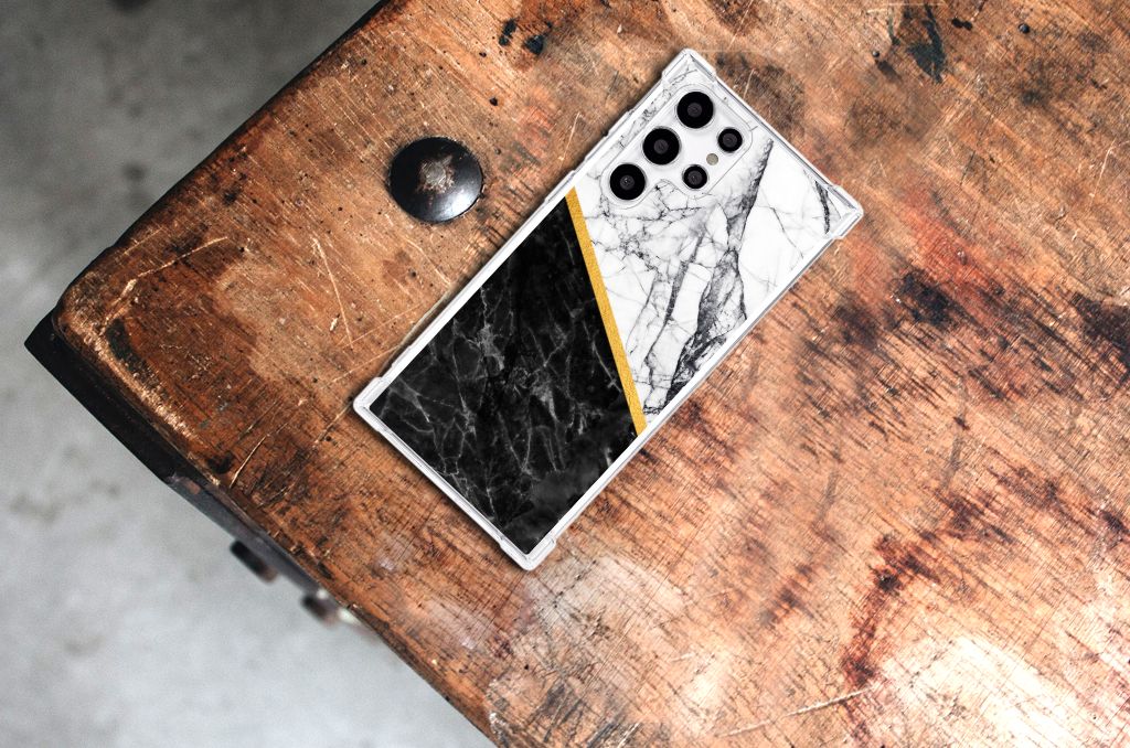 Ben je op zoek naar een uniek telefoonhoesje voor je Samsung Galaxy S22 Ultra? Dan ben je bij B2C Telecom aan het juiste adres! Speciaal voor jou hebben we dit prachtige Marble White Black design in onze collectie hoesjes opgenomen. Het design wordt bedrukt op een Anti-Shock Hoesje en is gemaakt van flexibel rubber. Het hoesje is perfect voor de actieve smartphonegebruiker door de opstaande randen/hoeken. Denk aan mensen die veel sporten, reizen of wandelen en net iets meer zekerheid willen als het op hun geliefde telefoon aankomt. Het design wordt alleen aan de bovenkant van het hoesje bedrukt en de randen blijven transparant. Aan de zijkanten zijn uitsparingen gemaakt waardoor je met gemak alle knoppen en poorten kunt bedienen. Wij adviseren om dit hoesje in combinatie met een screenprotector te gebruiken voor een langere levensduur van je telefoon. Wil je dit hoesje nog iets extra's geven? Voeg dan gratis je naam of een quote toe! Is dit design hoesje toch niet helemaal wat je zocht? Ontwerp dan zelf een hoesje in ons ontwerpprogramma.