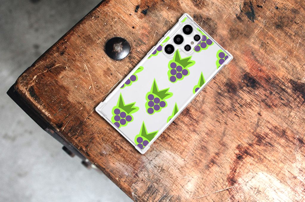 Ben je op zoek naar een uniek telefoonhoesje voor je Samsung Galaxy S22 Ultra? Dan ben je bij B2C Telecom aan het juiste adres! Speciaal voor jou hebben we dit prachtige Druiven design in onze collectie hoesjes opgenomen. Het design wordt bedrukt op een Beschermhoes en is gemaakt van flexibel rubber. Het hoesje is perfect voor de actieve smartphonegebruiker door de opstaande randen/hoeken. Denk aan mensen die veel sporten, reizen of wandelen en net iets meer zekerheid willen als het op hun geliefde telefoon aankomt. Het design wordt alleen aan de bovenkant van het hoesje bedrukt en de randen blijven transparant. Aan de zijkanten zijn uitsparingen gemaakt waardoor je met gemak alle knoppen en poorten kunt bedienen. Wij adviseren om dit hoesje in combinatie met een screenprotector te gebruiken voor een langere levensduur van je telefoon. Wil je dit hoesje nog iets extra's geven? Voeg dan gratis je naam of een quote toe! Is dit design hoesje toch niet helemaal wat je zocht? Ontwerp dan zelf een hoesje in ons ontwerpprogramma
