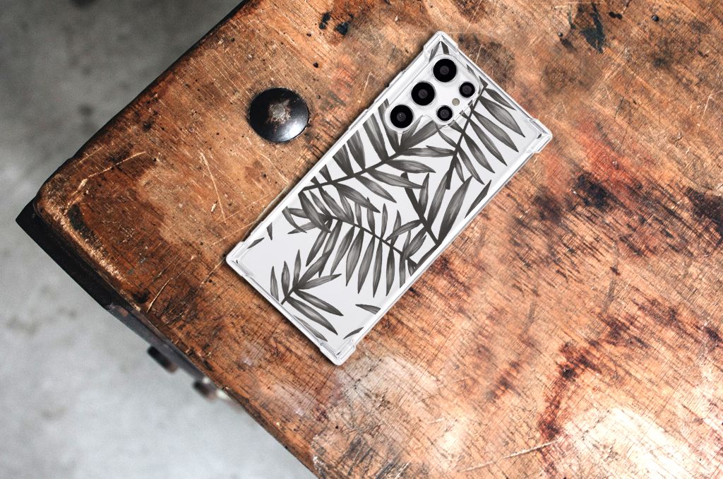 Ben je op zoek naar een uniek telefoonhoesje voor je Samsung Galaxy S22 Ultra? Dan ben je bij B2C Telecom aan het juiste adres! Speciaal voor jou hebben we dit prachtige Leaves Grey design in onze collectie hoesjes opgenomen. Het design wordt bedrukt op een Case en is gemaakt van flexibel rubber. Het hoesje is perfect voor de actieve smartphonegebruiker door de opstaande randen/hoeken. Denk aan mensen die veel sporten, reizen of wandelen en net iets meer zekerheid willen als het op hun geliefde telefoon aankomt. Het design wordt alleen aan de bovenkant van het hoesje bedrukt en de randen blijven transparant. Aan de zijkanten zijn uitsparingen gemaakt waardoor je met gemak alle knoppen en poorten kunt bedienen. Wij adviseren om dit hoesje in combinatie met een screenprotector te gebruiken voor een langere levensduur van je telefoon. Wil je dit hoesje nog iets extra's geven? Voeg dan gratis je naam of een quote toe! Is dit design hoesje toch niet helemaal wat je zocht? Ontwerp dan zelf een hoesje in ons ontwerpprogramma.
