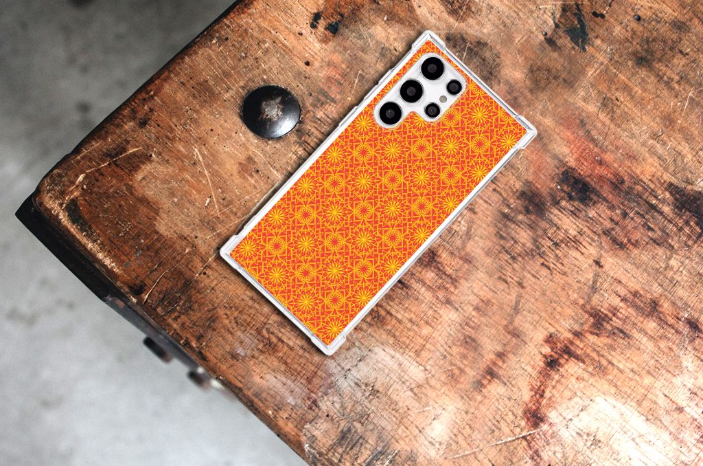 Ben je op zoek naar een uniek telefoonhoesje voor je Samsung Galaxy S22 Ultra? Dan ben je bij B2C Telecom aan het juiste adres! Speciaal voor jou hebben we dit prachtige Batik Orange design in onze collectie hoesjes opgenomen. Het design wordt bedrukt op een Doorzichtige Silicone Hoesje en is gemaakt van flexibel rubber. Het hoesje is perfect voor de actieve smartphonegebruiker door de opstaande randen/hoeken. Denk aan mensen die veel sporten, reizen of wandelen en net iets meer zekerheid willen als het op hun geliefde telefoon aankomt. Het design wordt alleen aan de bovenkant van het hoesje bedrukt en de randen blijven transparant. Aan de zijkanten zijn uitsparingen gemaakt waardoor je met gemak alle knoppen en poorten kunt bedienen. Wij adviseren om dit hoesje in combinatie met een screenprotector te gebruiken voor een langere levensduur van je telefoon. Wil je dit hoesje nog iets extra's geven? Voeg dan gratis je naam of een quote toe! Is dit design hoesje toch niet helemaal wat je zocht? Ontwerp dan zelf een hoesje in ons ontwerpprogramma.