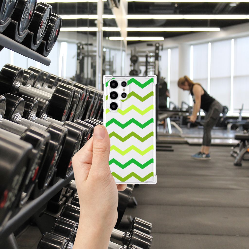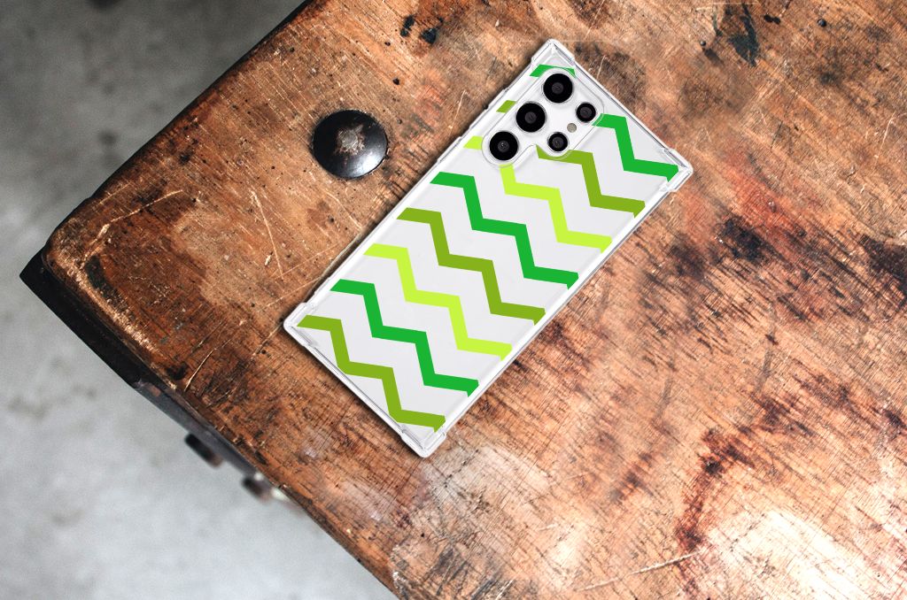 Ben je op zoek naar een uniek telefoonhoesje voor je Samsung Galaxy S22 Ultra? Dan ben je bij B2C Telecom aan het juiste adres! Speciaal voor jou hebben we dit prachtige Zigzag Groen design in onze collectie hoesjes opgenomen. Het design wordt bedrukt op een Doorzichtige Silicone Hoesje en is gemaakt van flexibel rubber. Het hoesje is perfect voor de actieve smartphonegebruiker door de opstaande randen/hoeken. Denk aan mensen die veel sporten, reizen of wandelen en net iets meer zekerheid willen als het op hun geliefde telefoon aankomt. Het design wordt alleen aan de bovenkant van het hoesje bedrukt en de randen blijven transparant. Aan de zijkanten zijn uitsparingen gemaakt waardoor je met gemak alle knoppen en poorten kunt bedienen. Wij adviseren om dit hoesje in combinatie met een screenprotector te gebruiken voor een langere levensduur van je telefoon. Wil je dit hoesje nog iets extra's geven? Voeg dan gratis je naam of een quote toe! Is dit design hoesje toch niet helemaal wat je zocht? Ontwerp dan zelf een hoesje in ons ontwerpprogramma.
