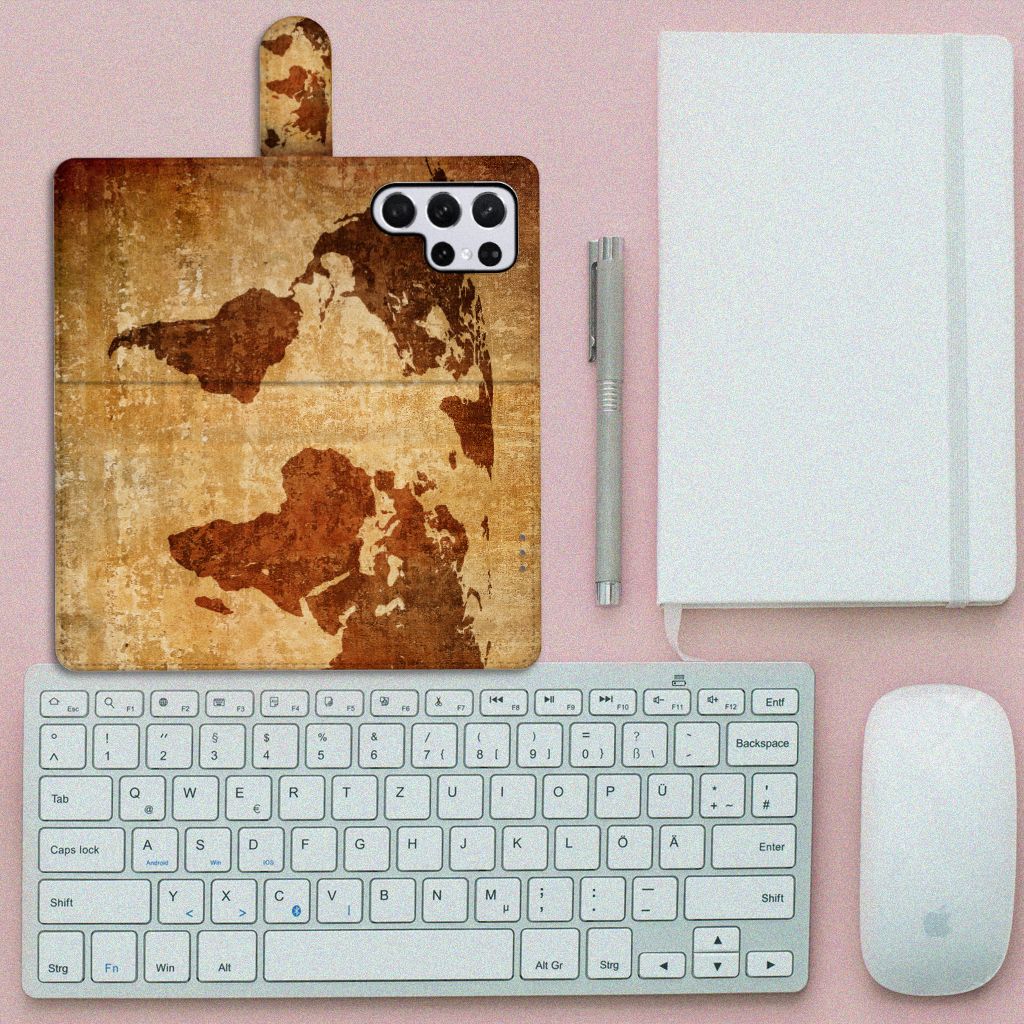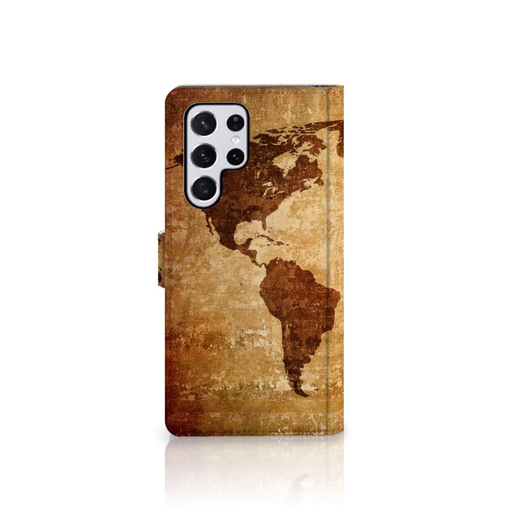 Samsung Galaxy S22 Ultra Flip Cover met pasjes Wereldkaart