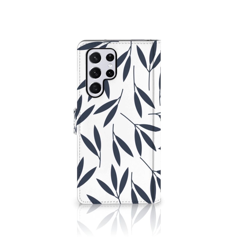 Samsung Galaxy S22 Ultra Hoesje met magnetische lipje als sluiting Leaves Blue