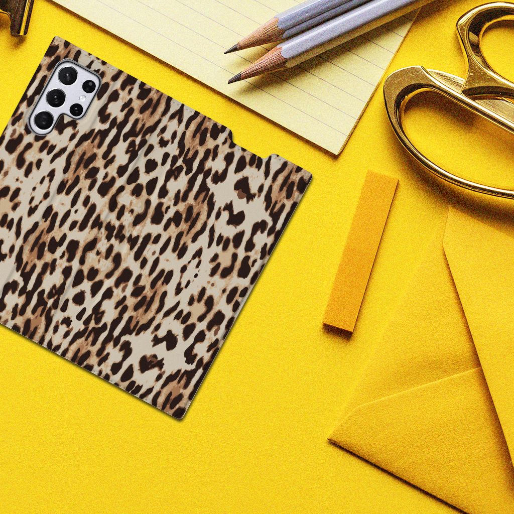 Het luipaard wordt ook wel een panter genoemd en is een sluwe kat. De bruingele vacht met een patroon van rozetachtige vlekken geeft een goede schutkleur. Dit zie je ook op een fraaie manier afgebeeld op dit super stoere hoesje met luipaardprint. Mensen die indruk willen maken kopen deze stand case met Leopard print. Een Samsung Galaxy S22 Ultra Hoesje maken is van alle markten thuis. Het is praktisch – vanwege onder meer het opbergvakje en de magnetische sluiting aan de binnenzijde – maar beschermt jouw smartphone tevens op een geweldige manier. Het luipaard is sterk en behendig en wellicht typeert jou dat ook wel. Dan past dit hoesje met luipaard perfect bij jou. De houder van TPU aan de binnenzijde is minstens zo sterk als het luipaard. Jouw telefoon is perfect beschermd en de case heeft tevens een standaard.