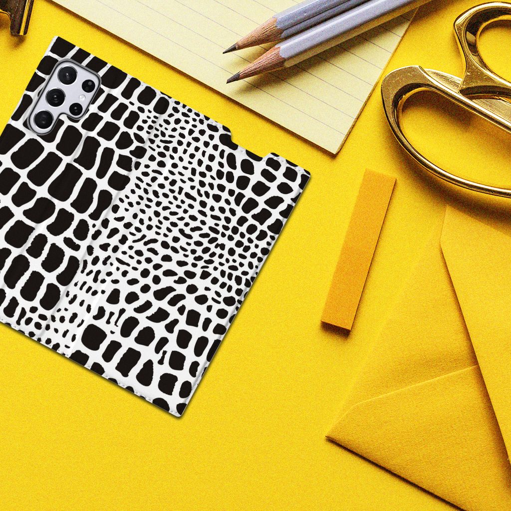 Deze stand case met zwarte en witte Slangenprint kunnen wij zeer exclusief noemen. Zeker als je er nog een bijzondere tekst van jezelf aan toevoegt, zoals je eigen naam in een sierletter. Jouw stand case krijgt dan een persoonlijke uitstraling, net nog een beetje specialer dan dit hoesje met zwarte en witte slangenprint. Wat niets afdoet van de exclusiviteit van deze stand case met zwarte en witte slangenprint. Ben jij toe aan een stoer en opvallend Samsung Galaxy S22 Ultra Hoesje maken? Pak dan dit design met print van slangenhuid als basis. Het stand hoesje met zwarte en witte slangenprint is van PU-leer (buitenzijde) en TPU (binnenzijde) en beschikt over een houder en een standaard. Verder is dit stand hoesje met slangenprint voorzien van een magnetische sluiting aan de binnenkant. Jij bent ervan verzekerd dat jouw smartphone tegen een stootje kan met dit stand hoesje met zwarte en witte slangenprint.