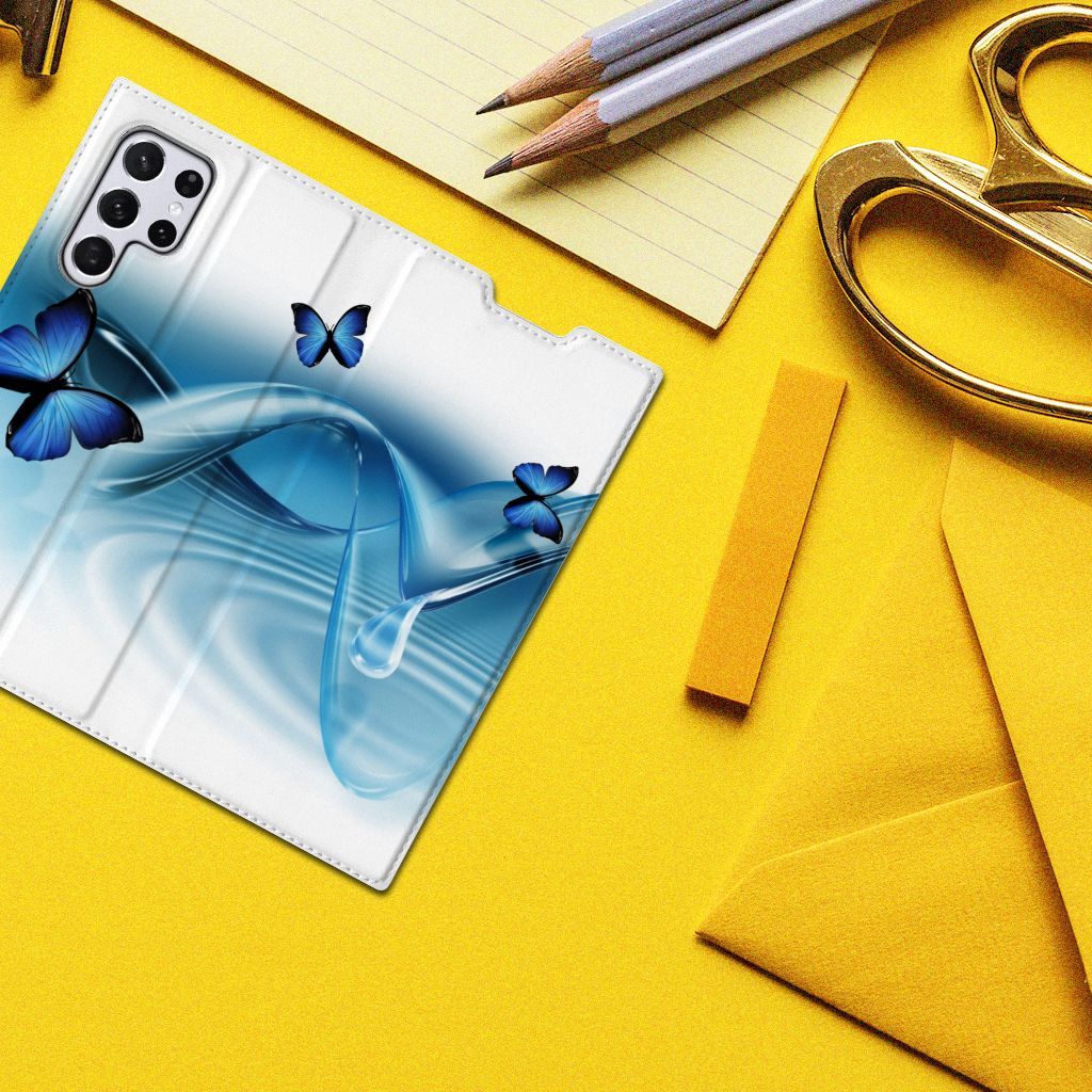 Deze vrolijke Samsung Galaxy S22 Ultra Hoesje maken met blauwe vlinders is een ware eyecatcher. De meeste vlinders hebben een onopvallende vleugelkleur, andere soorten hebben juist heldere en felle kleuren. Wij kunnen deze blauwe vlinders op een zeer handige stand case zetten. Deze hoesjes zijn het meest gewild. Met onze geavanceerde printer zetten we de afbeelding van vlinders op alle zijden van het hoesje. De case met vlinders heeft aan de binnenkant een houder waarin je jouw creditcard of ander pasje kwijt kunt. De case heeft bovendien een handige standaard. Verder is je telefoon natuurlijk maximaal beschermd met deze stand case met print van blauwe vlinders. De houder aan de binnenzijde van het design hoesje met vlinder print is van TPU.