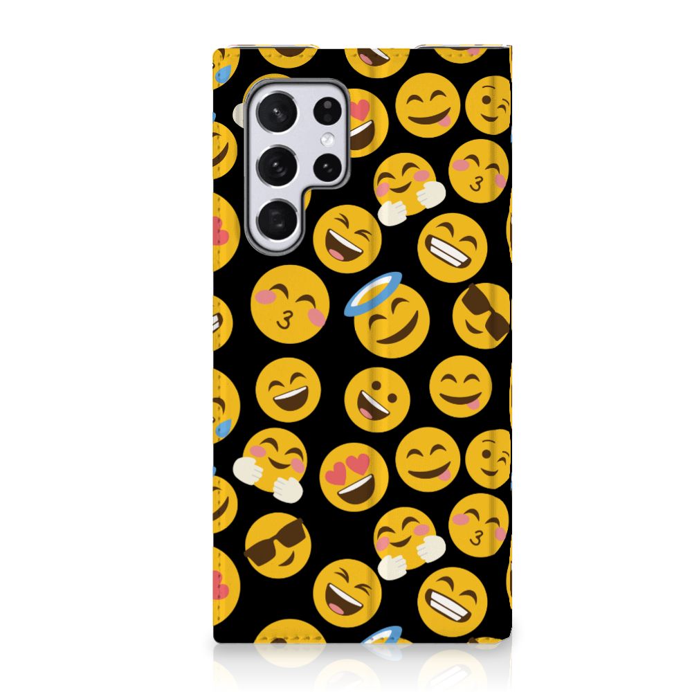 Je gebruikt ze waarschijnlijk dagelijks: emoji’s. Daarom hebben we besloten ze op een design hoesje te zetten. De kleurrijke, vaak gele emoticons maken chatberichten net wat spontaner. Dat hebben we allemaal te danken aan Japan, waar de emoji’s die we zo goed kennen vandaan komen. Ondertussen zijn er meer dan 1800! Deze passen natuurlijk niet allemaal op een Samsung Galaxy S22 Ultra Hoesje met Magneet, maar we hebben de meeste gebruikte exemplaren erop gezet. Deze stand case is voorzien van een houder voor een pasje. Super handig. De telefoon zelf zit in een houder van TPU, dat zeer flexibel is. We gebruiken emoji’s vaak om complete woorden te vervangen. Dit smartphone hoesje zegt dan ook meer dan duizend woorden kunnen. De stand case heeft een magnetische sluiting aan de binnenzijde en wordt aan alle kanten bedrukt met emoji’s. Tevens is er een standaard.