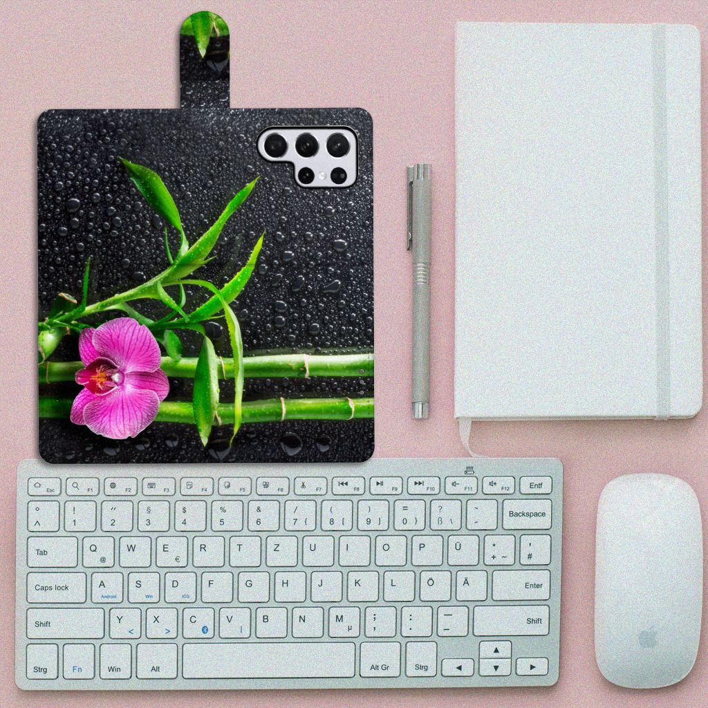 Samsung Galaxy S22 Ultra Hoesje met pasjes Orchidee