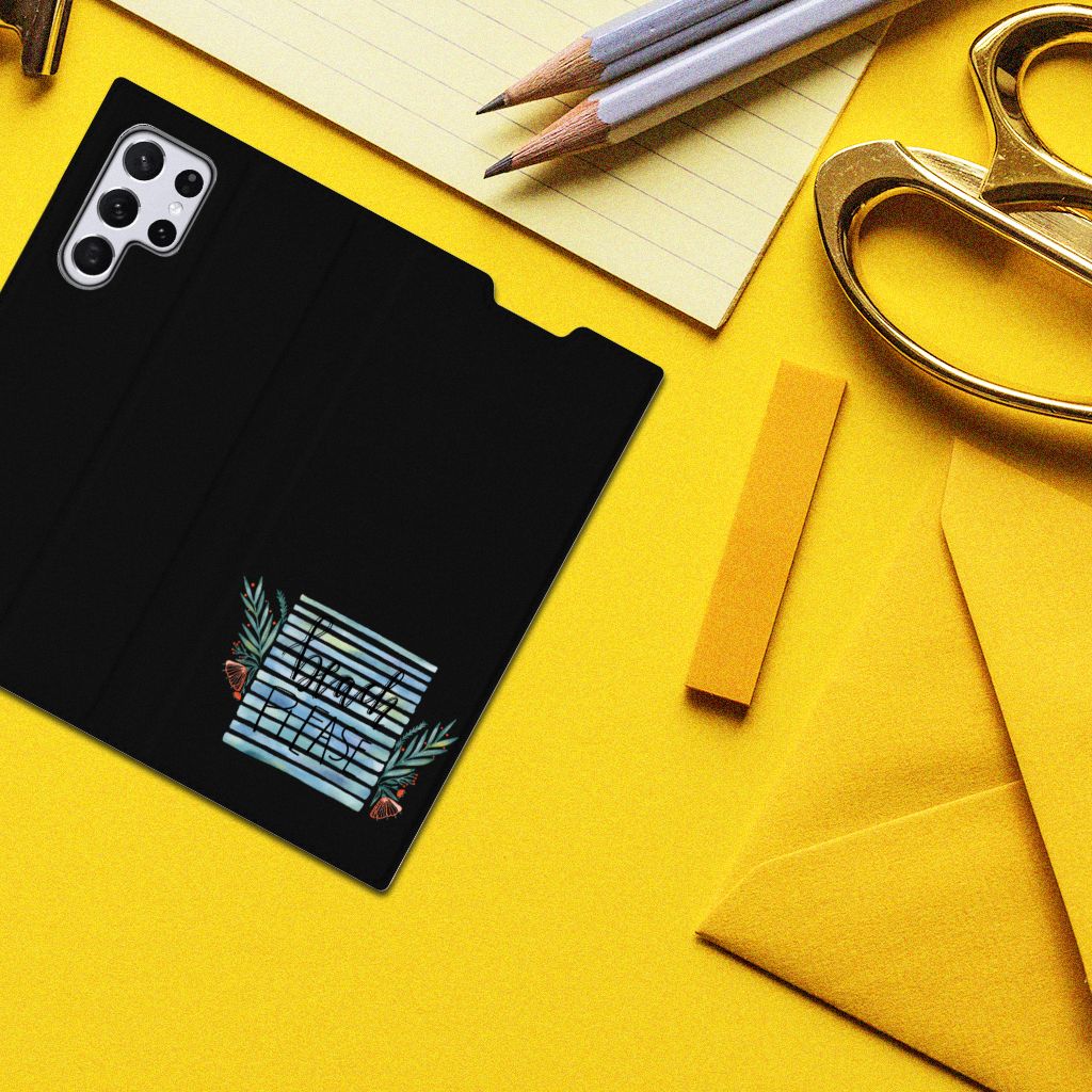 Dit design is perfect voor iedereen die geen genoeg kan krijgen van zon, zee en strand. Met dit Magnet Case voor de Samsung Galaxy S22 Ultra draag je de zomer altijd een beetje bij je. Dankzij de tekst ‘Beach Please’ ziet iedereen dat je een echte zonaanbidder bent. Het boho beach-ontwerp is vrolijk dankzij de subtiele bloemen en de leuke kleurtjes. Dit populaire smartphonehoesje heeft één vakje voor een pasje of briefgeld en is aan alle zijden bedrukt. Met de standcase zet je je telefoon gemakkelijk neer, zodat je je handen vrij hebt als je bijvoorbeeld een video wilt kijken. De binnenkant van de standcase is van grijs PU-leer. Dat is fijn, omdat je daardoor niet snel vlekken ziet op je hoesje.