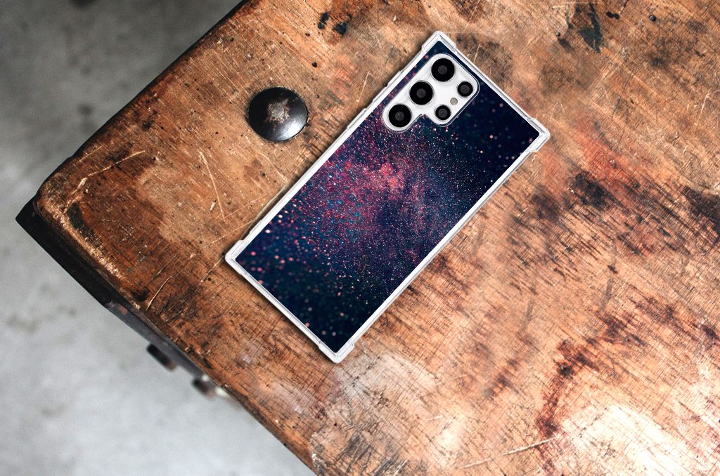 Ben je op zoek naar een uniek telefoonhoesje voor je Samsung Galaxy S22 Ultra? Dan ben je bij B2C Telecom aan het juiste adres! Speciaal voor jou hebben we dit prachtige Stars design in onze collectie hoesjes opgenomen. Het design wordt bedrukt op een Shockproof Case en is gemaakt van flexibel rubber. Het hoesje is perfect voor de actieve smartphonegebruiker door de opstaande randen/hoeken. Denk aan mensen die veel sporten, reizen of wandelen en net iets meer zekerheid willen als het op hun geliefde telefoon aankomt. Het design wordt alleen aan de bovenkant van het hoesje bedrukt en de randen blijven transparant. Aan de zijkanten zijn uitsparingen gemaakt waardoor je met gemak alle knoppen en poorten kunt bedienen. Wij adviseren om dit hoesje in combinatie met een screenprotector te gebruiken voor een langere levensduur van je telefoon. Wil je dit hoesje nog iets extra's geven? Voeg dan gratis je naam of een quote toe! Is dit design hoesje toch niet helemaal wat je zocht? Ontwerp dan zelf een hoesje in ons ontwerpprogramma.