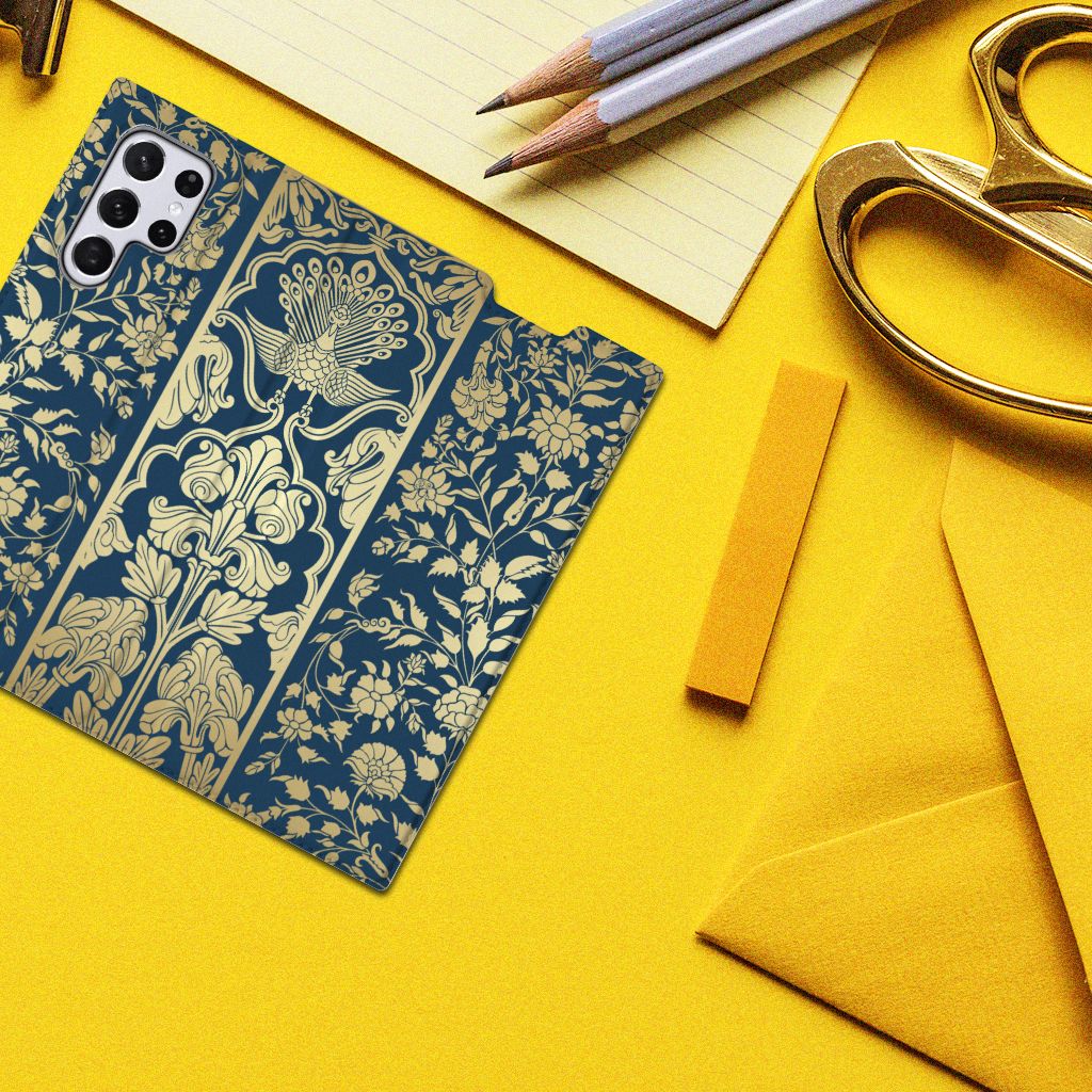 Samsung Galaxy S22 Ultra Telefoonhoesje met Pasjes Pauw met Bloemen