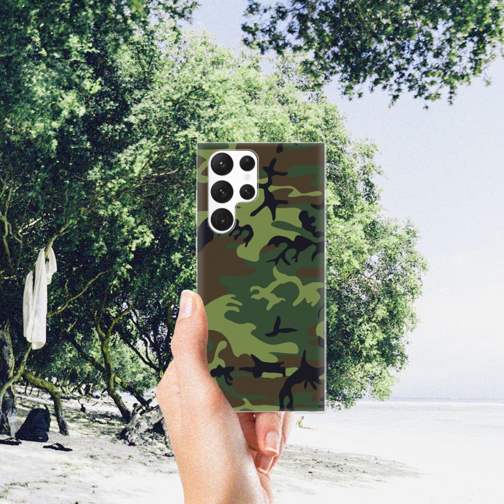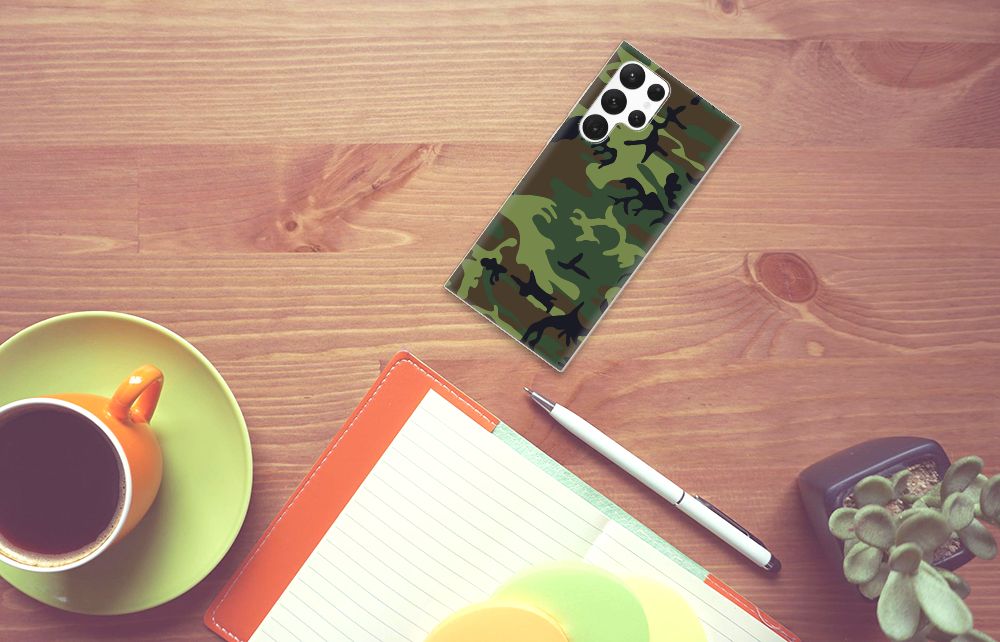 Voel je jezelf verbonden met het leger, dan zal deze Samsung Galaxy S22 Ultra TPU bumper je zeker bevallen. Het tpu hoesje beschikt namelijk over donkere camouflage kleuren. Deze worden vaak gebruikt door mensen die zich graag willen mengen in hun omgeving. Dit Army Dark hoesje is er dus voornamelijk in kleuren die in de natuur voorkomen, zodat je één wordt met je achtergrond. Beschermt de krijgsmacht volk en vaderland, dit hoesje in donkere camouflage kleuren zal jouw telefoon onder alle omstandigheden schadevrij houden. Met een hoesje in dit soort kleuren zal je niet zo snel opvallen. Het design staat op een TPU case. Dit hoesje wordt alleen aan de bovenkant bedrukt met donkere camouflage kleuren en is zeer flexibel. De randen van het hoesje blijven transparant.