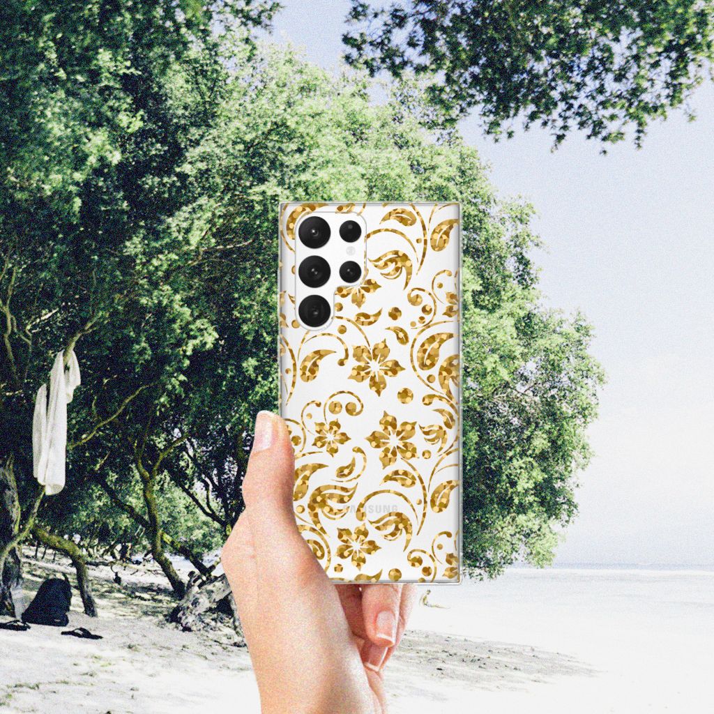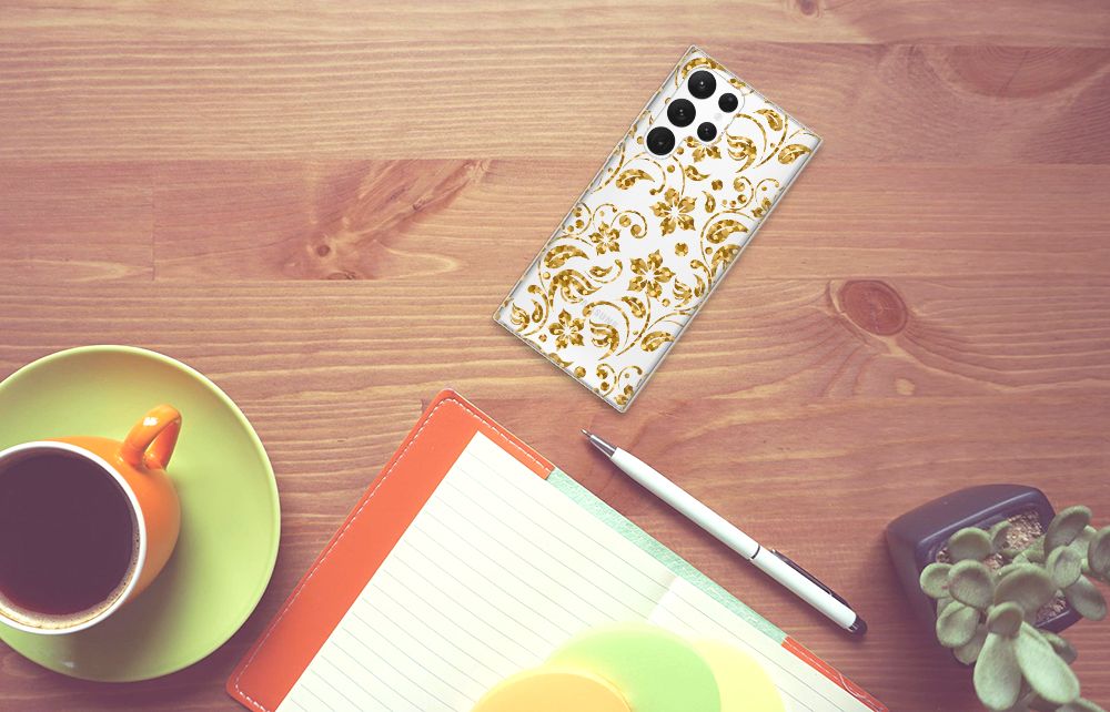 Ben je op zoek naar een uniek telefoonhoesje voor je Samsung Galaxy S22 Ultra? Dan ben je bij B2C Telecom aan het juiste adres! Speciaal voor jou hebben we dit prachtige Gouden Bloemen design in onze collectie hoesjes opgenomen. Het design wordt bedrukt op een TPU Case en is gemaakt van flexibel rubber. Het design wordt alleen aan de bovenkant van het hoesje bedrukt en de randen blijven transparant. Aan de zijkanten zijn uitsparingen gemaakt waardoor je met gemak alle knoppen en poorten kunt bedienen. Wij adviseren om dit hoesje in combinatie met een screenprotector te gebruiken voor een langere levensduur van je telefoon. Wil je dit design hoesje nog iets extra's geven? Voeg dan gratis je naam of een quote toe! Is dit design hoesje toch niet helemaal wat je zocht? Ontwerp dan zelf een hoesje in ons ontwerpprogramma.