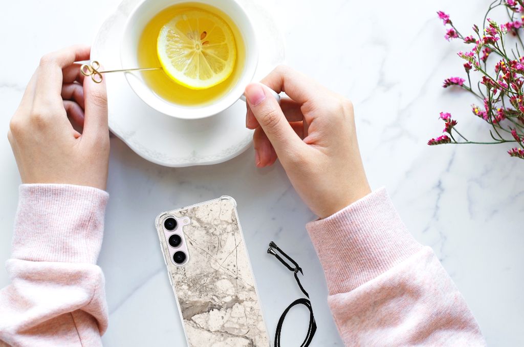 Ben je op zoek naar een uniek telefoonhoesje voor je Samsung Galaxy S23? Dan ben je bij B2C Telecom aan het juiste adres! Speciaal voor jou hebben we dit prachtige Marmer Beige design in onze collectie hoesjes opgenomen. Het design wordt bedrukt op een Anti-Shock Hoesje en is gemaakt van flexibel rubber. Het hoesje is perfect voor de actieve smartphonegebruiker door de opstaande randen/hoeken. Denk aan mensen die veel sporten, reizen of wandelen en net iets meer zekerheid willen als het op hun geliefde telefoon aankomt. Het design wordt alleen aan de bovenkant van het hoesje bedrukt en de randen blijven transparant. Aan de zijkanten zijn uitsparingen gemaakt waardoor je met gemak alle knoppen en poorten kunt bedienen. Wij adviseren om dit hoesje in combinatie met een screenprotector te gebruiken voor een langere levensduur van je telefoon. Wil je dit hoesje nog iets extra's geven? Voeg dan gratis je naam of een quote toe! Is dit design hoesje toch niet helemaal wat je zocht? Ontwerp dan zelf een hoesje in ons ontwerpprogramma.