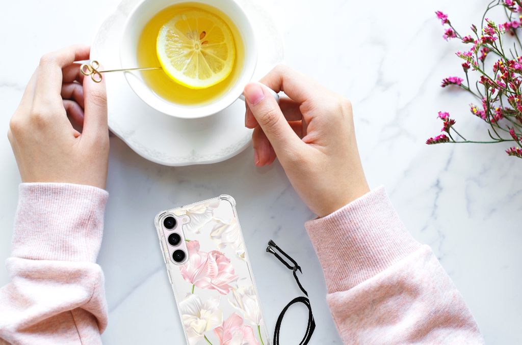 Ben je op zoek naar een uniek telefoonhoesje voor je Samsung Galaxy S23? Dan ben je bij B2C Telecom aan het juiste adres! Speciaal voor jou hebben we dit prachtige Lovely Flowers design in onze collectie hoesjes opgenomen. Het design wordt bedrukt op een Case en is gemaakt van flexibel rubber. Het hoesje is perfect voor de actieve smartphonegebruiker door de opstaande randen/hoeken. Denk aan mensen die veel sporten, reizen of wandelen en net iets meer zekerheid willen als het op hun geliefde telefoon aankomt. Het design wordt alleen aan de bovenkant van het hoesje bedrukt en de randen blijven transparant. Aan de zijkanten zijn uitsparingen gemaakt waardoor je met gemak alle knoppen en poorten kunt bedienen. Wij adviseren om dit hoesje in combinatie met een screenprotector te gebruiken voor een langere levensduur van je telefoon. Wil je dit hoesje nog iets extra's geven? Voeg dan gratis je naam of een quote toe! Is dit design hoesje toch niet helemaal wat je zocht? Ontwerp dan zelf een hoesje in ons ontwerpprogramma.