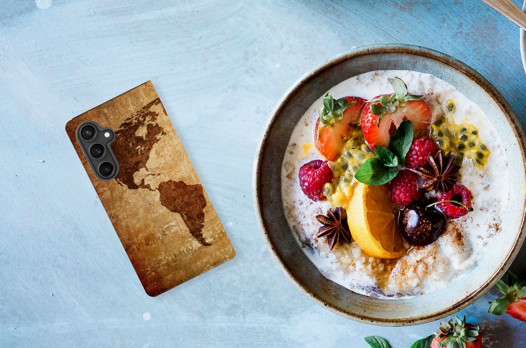 Als je een hoesje koopt met een wereldkaart, kun jij op veilige wijze met je smartphone rond de wereld reizen. Ga je zonder een boekhoesje met wereldkaart het buitenland verkennen, dan loop je veel te groot risico dat je stukken krijgt aan je smartphone. Met als gevolg dat je de belangrijke gebeurtenissen op je reis wellicht niet meer vast kunt leggen om door te sturen aan je vrienden. In het slechtste geval wordt jouw toestel zonder een smartphone hoesje met wereldkaart onbruikbaar. Wij kunnen de wereldkaart bedrukken op een stand case. Een Samsung Galaxy S23 FE Book Cover beschermt jouw telefoon aan alle kanten en beschikt over een 1 opbergvakje en een speciale standaard. Het hoesje wordt afgesloten met een magneet aan de binnenzijde. De houder aan de binnenzijde is van TPU. Dit stand hoesje met wereldkaart is voor een zeer laag bedrag te bestellen.