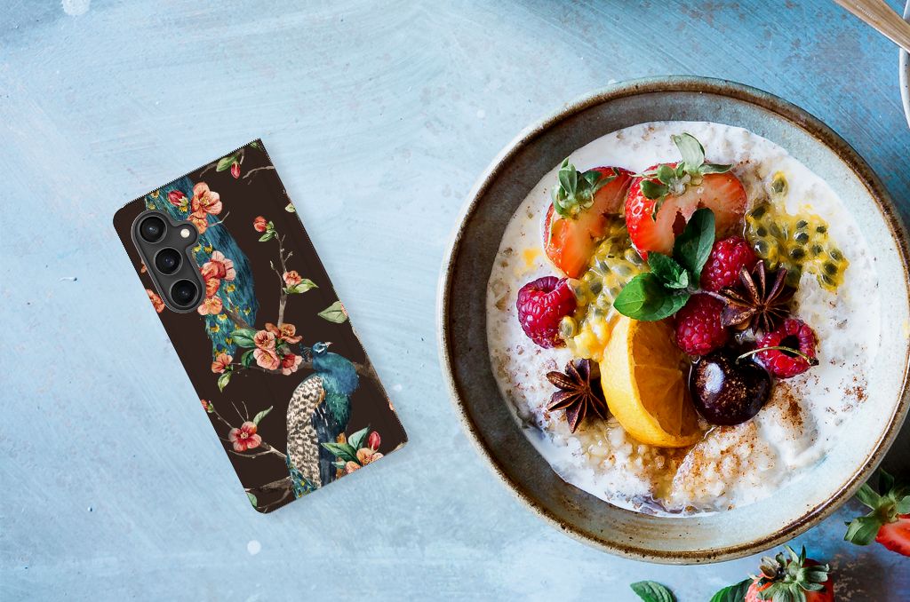 Op deze Samsung Galaxy S23 FE Hoesje maken kun jij zo trots als een pauw zijn. Met dit geweldige design hoesje met een Pauw met Bloemen erop kun jij je smartphone voor zeer lange tijd beschermen. Deze stand case is zeer duurzaam en heeft aan de binnenkant een opbergvakje, waarin je een fitnesspas of pinpas kwijt kunt. Met een stand case met fleurige bloemen en trotse pauwen wordt jouw telefoon er een stuk mooier op. De onderscheidend case heeft een houder van TPU en een magneet aan de binnenkant. Zie jij liever jouw eigen huisdier op een telefoonhoesje? Dan adviseren we je zelf een hoesje te ontwerpen met onze unieke Phone Case Designer. We bedrukken alle zijden van de stand case, met duurzame inkt.