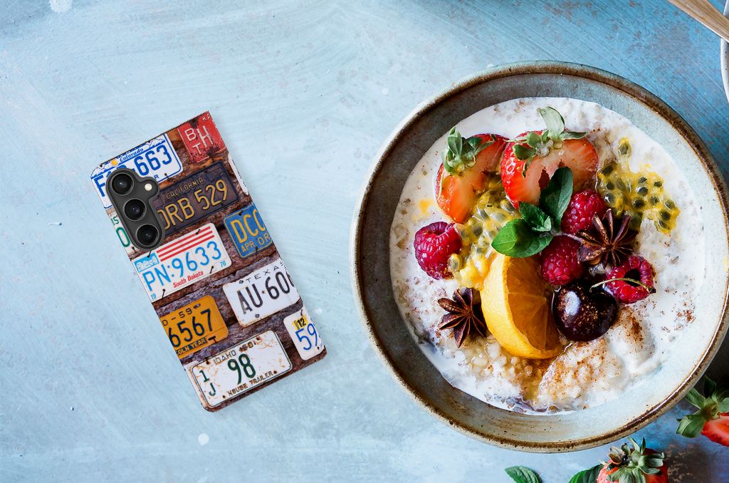 Je gaat waarschijnlijk helemaal uit je plaat met deze Samsung Galaxy S23 FE Stand Case met Amerikaanse Kentekenplaten. Kentekenplaten van Utah, Virginia, Nebraska, Kansas en Iowa: ze komen allemaal voorbij op deze opzienbarende stand case, te koop voor een zeer scherpe prijs. Behalve een hoes met een fraaie print van kentekenplaten krijg je ook een case met zeer veel praktische eigenschappen. Zoals een opbergvakje voor een pasje en briefgeld en een magneet aan de binnenzijde, die jouw telefoonhoesje met Amerikaanse kentekenplaten magnetisch afsluit. De case wordt aan alle zijden bedrukt en heeft een standaard. Jouw telefoon zit in een houder van TPU, die zeer flexibel is. Een betere bescherming dan deze stand case met Amerikaanse kentekenplaten is nauwelijks denkbaar.