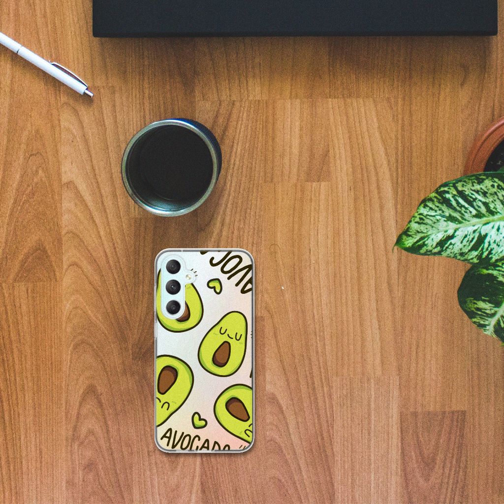 Avocado’s zijn niet alleen heel erg goed voor je, ze zijn ook super leuk op je telefoonhoesje. Dit unieke design vol schattige avocado’s zal jou en iedereen om je heen meteen opvrolijken. Nog een voordeel van dit design: deze avocado’s bederven nooit! Dit leuke Avocado Singing-ontwerp staat op een Telefoonhoesje met Naam voor de Samsung Galaxy S23 FE. Met deze vrolijke groene vruchten op je hoesje val jij zeker op. TPU is flexibel en onbreekbaar. Zo is je telefoon aan de achterkant en de randen heel goed beschermd. De case is aan de bovenkant bedrukt, de randen blijven transparant. Het TPU-hoesje is perfect te combineren met een screenprotector, zo zijn je telefoon en je beeldscherm perfect beschermd.