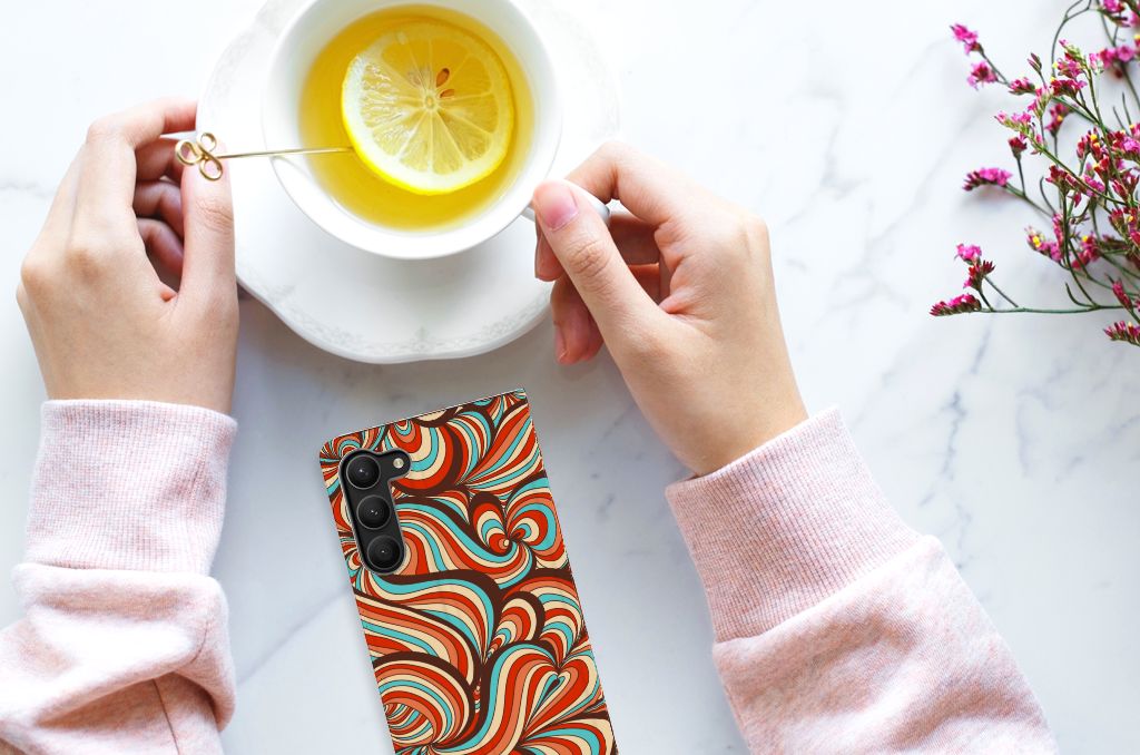 Voor de mensen die een beetje artistiek zijn, is er deze Samsung Galaxy S23 Plus Bookcase met kleuren in een soort van retro stijl. Je gaat een beetje terug in de tijd met deze stand case in allerlei felle kleuren en vreemde vormen. De opdruk op dit design hoesje is zeer duurzaam en gaat net zo lang mee als de case zelf. De Retro print wordt in ons eigen magazijn op het hoesje gezet, met speciale uv-inkt. De stand case heeft voldoende uitsparingen dus je hoeft de telefoon nooit uit dit retro design hoesje te halen. Deze case beschermt jouw telefoon aan alle kanten en beschikt over 1 opbergvakje en een speciale standaard. Het hoesje wordt afgesloten met een magneet aan de binnenzijde. De houder aan de binnenzijde van de retro hoes is van TPU.