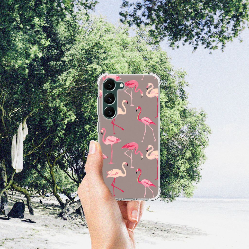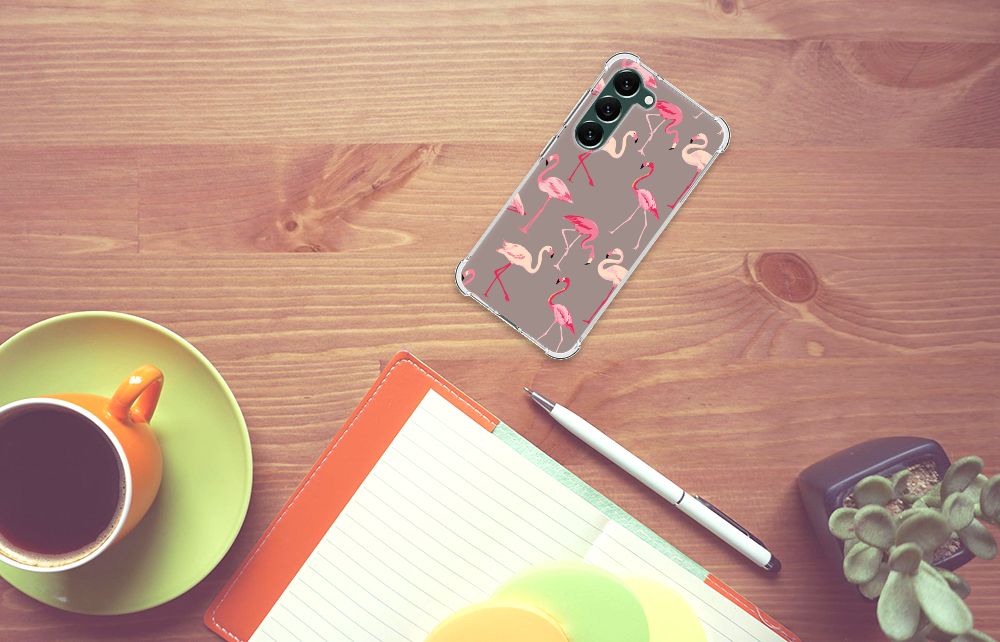 Ben je op zoek naar een uniek telefoonhoesje voor je Samsung Galaxy S23 Plus? Dan ben je bij B2C Telecom aan het juiste adres! Speciaal voor jou hebben we dit prachtige Flamingo design in onze collectie hoesjes opgenomen. Het design wordt bedrukt op een Case Anti-shock en is gemaakt van flexibel rubber. Het hoesje is perfect voor de actieve smartphonegebruiker door de opstaande randen/hoeken. Denk aan mensen die veel sporten, reizen of wandelen en net iets meer zekerheid willen als het op hun geliefde telefoon aankomt. Het design wordt alleen aan de bovenkant van het hoesje bedrukt en de randen blijven transparant. Aan de zijkanten zijn uitsparingen gemaakt waardoor je met gemak alle knoppen en poorten kunt bedienen. Wij adviseren om dit hoesje in combinatie met een screenprotector te gebruiken voor een langere levensduur van je telefoon. Wil je dit hoesje nog iets extra's geven? Voeg dan gratis je naam of een quote toe! Is dit design hoesje toch niet helemaal wat je zocht? Ontwerp dan zelf een hoesje in ons ontwerpprogramma.