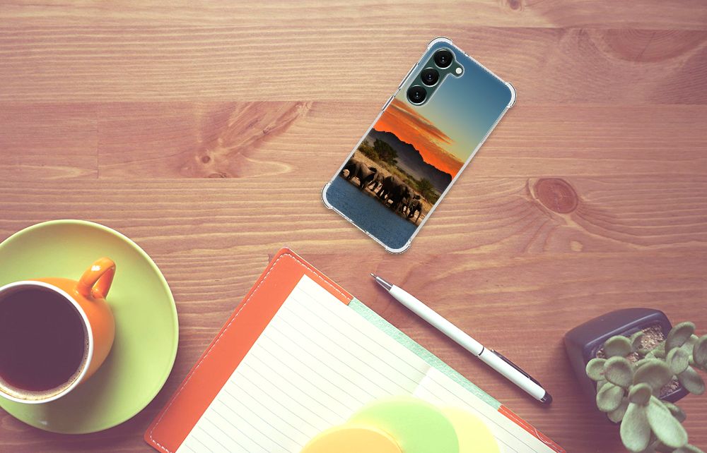 Ben je op zoek naar een uniek telefoonhoesje voor je Samsung Galaxy S23 Plus? Dan ben je bij B2C Telecom aan het juiste adres! Speciaal voor jou hebben we dit prachtige Olifanten in onze collectie hoesjes opgenomen. Het design wordt bedrukt op een Case Anti-shock en is gemaakt van flexibel rubber. Het hoesje is perfect voor de actieve smartphonegebruiker door de opstaande randen/hoeken. Denk aan mensen die veel sporten, reizen of wandelen en net iets meer zekerheid willen als het op hun geliefde telefoon aankomt. Het design wordt alleen aan de bovenkant van het hoesje bedrukt en de randen blijven transparant. Aan de zijkanten zijn uitsparingen gemaakt waardoor je met gemak alle knoppen en poorten kunt bedienen. Wij adviseren om dit hoesje in combinatie met een screenprotector te gebruiken voor een langere levensduur van je telefoon. Wil je dit hoesje nog iets extra's geven? Voeg dan gratis je naam of een quote toe! Is dit design hoesje toch niet helemaal wat je zocht? Ontwerp dan zelf een hoesje in ons ontwerpprogramma.