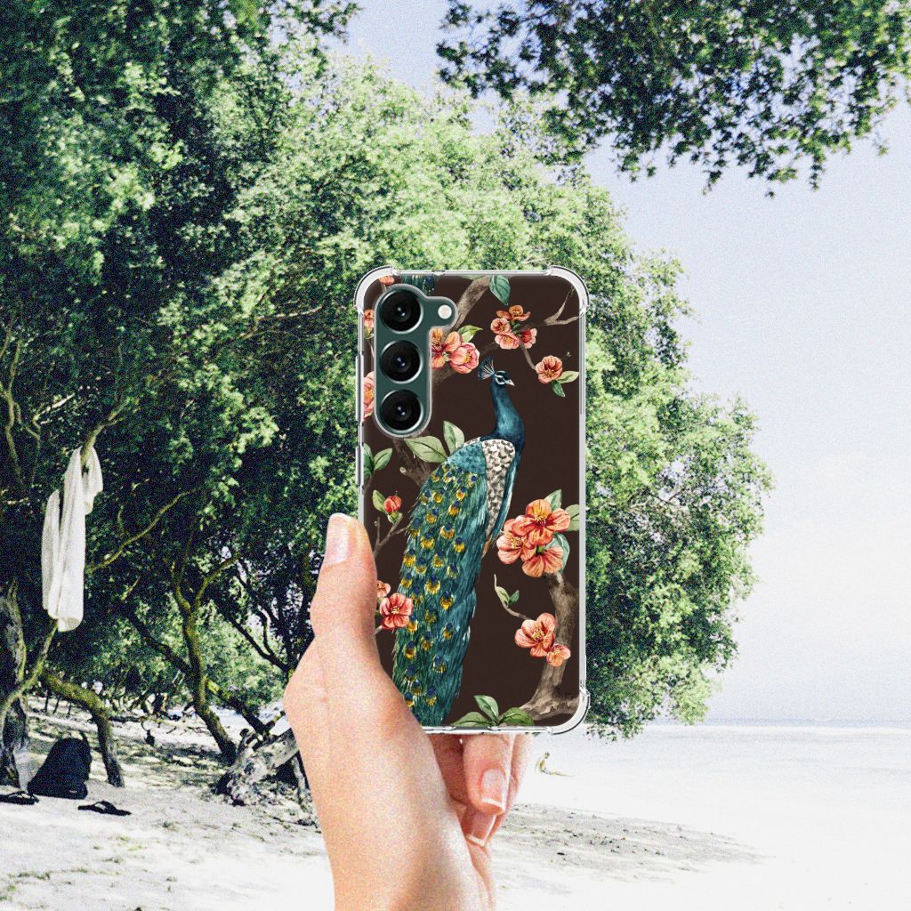 Ben je op zoek naar een uniek telefoonhoesje voor je Samsung Galaxy S23 Plus? Dan ben je bij B2C Telecom aan het juiste adres! Speciaal voor jou hebben we dit prachtige Pauw met Bloemen in onze collectie hoesjes opgenomen. Het design wordt bedrukt op een Case Anti-shock en is gemaakt van flexibel rubber. Het hoesje is perfect voor de actieve smartphonegebruiker door de opstaande randen/hoeken. Denk aan mensen die veel sporten, reizen of wandelen en net iets meer zekerheid willen als het op hun geliefde telefoon aankomt. Het design wordt alleen aan de bovenkant van het hoesje bedrukt en de randen blijven transparant. Aan de zijkanten zijn uitsparingen gemaakt waardoor je met gemak alle knoppen en poorten kunt bedienen. Wij adviseren om dit hoesje in combinatie met een screenprotector te gebruiken voor een langere levensduur van je telefoon. Wil je dit hoesje nog iets extra's geven? Voeg dan gratis je naam of een quote toe! Is dit design hoesje toch niet helemaal wat je zocht? Ontwerp dan zelf een hoesje in ons ontwerpprogramma.