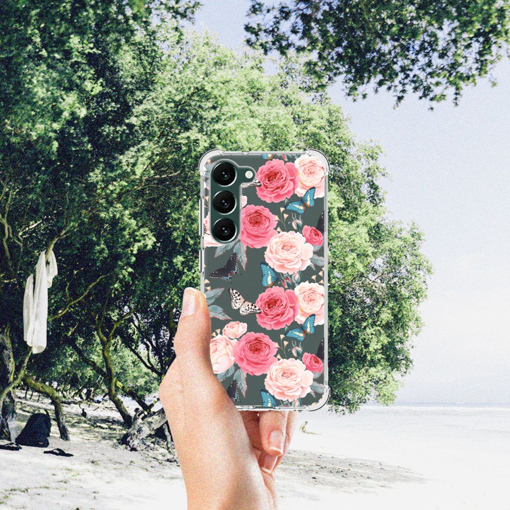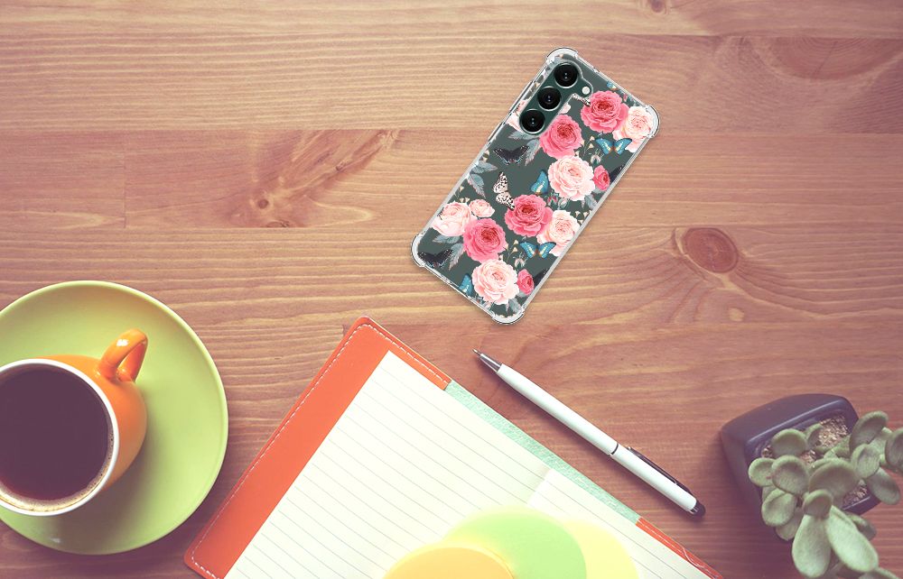 Ben je op zoek naar een uniek telefoonhoesje voor je Samsung Galaxy S23 Plus? Dan ben je bij B2C Telecom aan het juiste adres! Speciaal voor jou hebben we dit prachtige Butterfly Roses design in onze collectie hoesjes opgenomen. Het design wordt bedrukt op een Case en is gemaakt van flexibel rubber. Het hoesje is perfect voor de actieve smartphonegebruiker door de opstaande randen/hoeken. Denk aan mensen die veel sporten, reizen of wandelen en net iets meer zekerheid willen als het op hun geliefde telefoon aankomt. Het design wordt alleen aan de bovenkant van het hoesje bedrukt en de randen blijven transparant. Aan de zijkanten zijn uitsparingen gemaakt waardoor je met gemak alle knoppen en poorten kunt bedienen. Wij adviseren om dit hoesje in combinatie met een screenprotector te gebruiken voor een langere levensduur van je telefoon. Wil je dit hoesje nog iets extra's geven? Voeg dan gratis je naam of een quote toe! Is dit design hoesje toch niet helemaal wat je zocht? Ontwerp dan zelf een hoesje in ons ontwerpprogramma.
