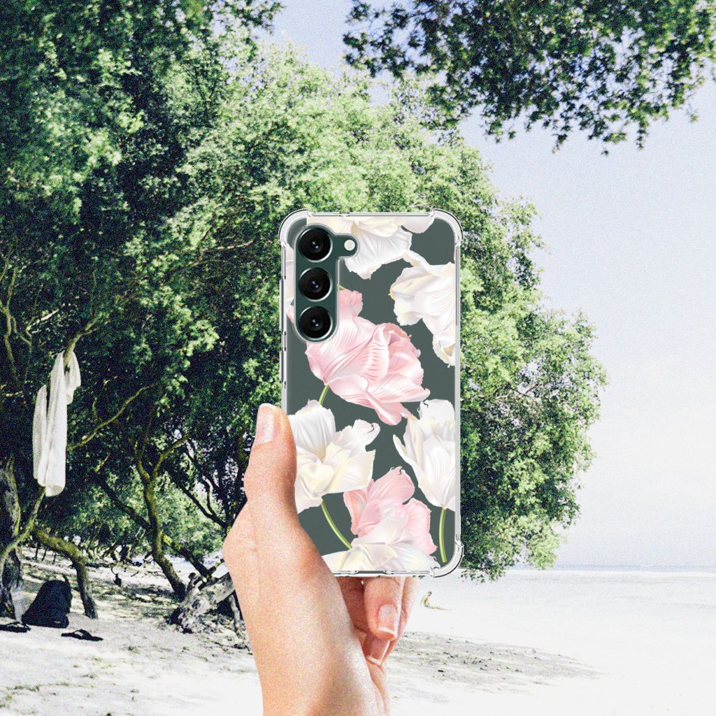 Ben je op zoek naar een uniek telefoonhoesje voor je Samsung Galaxy S23 Plus? Dan ben je bij B2C Telecom aan het juiste adres! Speciaal voor jou hebben we dit prachtige Lovely Flowers design in onze collectie hoesjes opgenomen. Het design wordt bedrukt op een Case en is gemaakt van flexibel rubber. Het hoesje is perfect voor de actieve smartphonegebruiker door de opstaande randen/hoeken. Denk aan mensen die veel sporten, reizen of wandelen en net iets meer zekerheid willen als het op hun geliefde telefoon aankomt. Het design wordt alleen aan de bovenkant van het hoesje bedrukt en de randen blijven transparant. Aan de zijkanten zijn uitsparingen gemaakt waardoor je met gemak alle knoppen en poorten kunt bedienen. Wij adviseren om dit hoesje in combinatie met een screenprotector te gebruiken voor een langere levensduur van je telefoon. Wil je dit hoesje nog iets extra's geven? Voeg dan gratis je naam of een quote toe! Is dit design hoesje toch niet helemaal wat je zocht? Ontwerp dan zelf een hoesje in ons ontwerpprogramma.