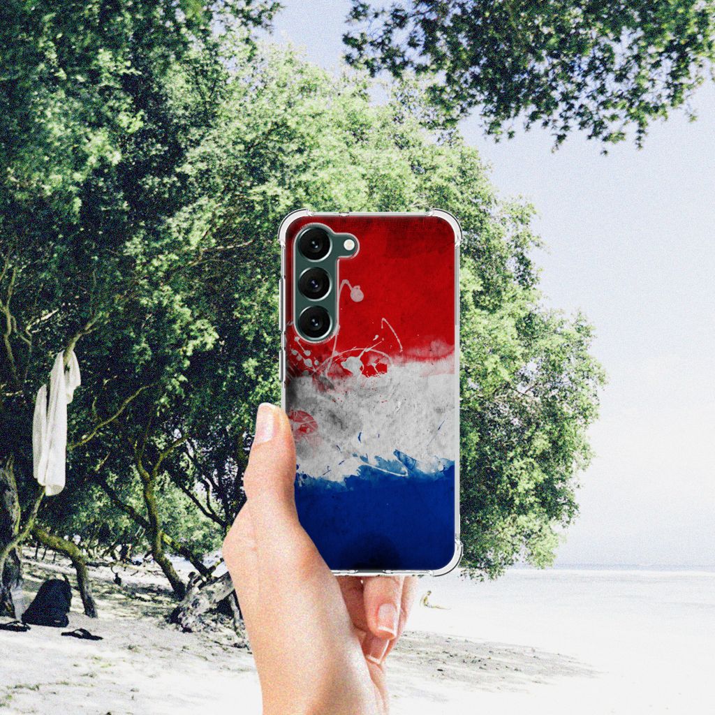 Ben je op zoek naar een uniek telefoonhoesje voor je Samsung Galaxy S23 Plus? Dan ben je bij B2C Telecom aan het juiste adres! Speciaal voor jou hebben we dit prachtige Nederlandse Vlag design in onze collectie hoesjes opgenomen. Het design wordt bedrukt op een Cover Case en is gemaakt van flexibel rubber. Het hoesje is perfect voor de actieve smartphonegebruiker door de opstaande randen/hoeken. Denk aan mensen die veel sporten, reizen of wandelen en net iets meer zekerheid willen als het op hun geliefde telefoon aankomt. Het design wordt alleen aan de bovenkant van het hoesje bedrukt en de randen blijven transparant. Aan de zijkanten zijn uitsparingen gemaakt waardoor je met gemak alle knoppen en poorten kunt bedienen. Wij adviseren om dit hoesje in combinatie met een screenprotector te gebruiken voor een langere levensduur van je telefoon. Wil je dit hoesje nog iets extra's geven? Voeg dan gratis je naam of een quote toe! Is dit design hoesje toch niet helemaal wat je zocht? Ontwerp dan zelf een hoesje in ons ontwerpprogramma.