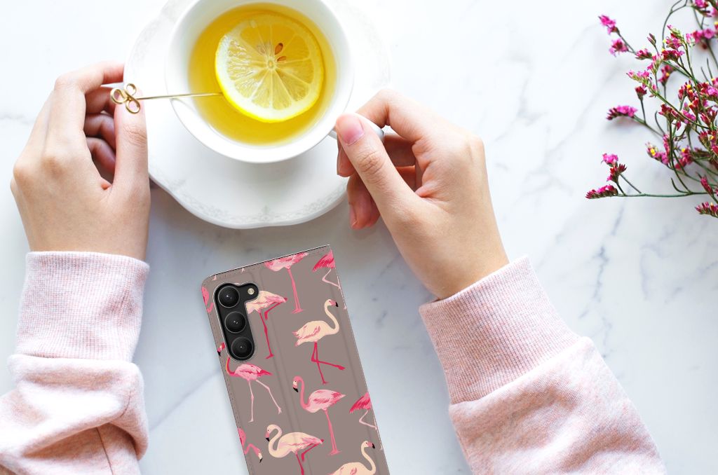 Een Samsung Galaxy S23 Plus Hoesje maken met rode flamingo’s is in vele opzichten bijzonder. De rode flamingo op het hoesje komt oorspronkelijk uit het Caraïbische gebied. Stel dat je in deze regio vakantie viert, dan val je zonder meer op met dit hoesje met flamingo’s. Deze stand case biedt bescherming voor alle zijden van je telefoon. Jouw smartphone ligt goed opgeborgen in de TPU houder aan de binnenzijde en in dit gedeelte van het hoesje met flamingo’s zit de magnetische sluiting. De lichtroze flamingo, ook present op deze case, wordt tegenwoordig als aparte soort gezien naast de rode flamingo. De stand case met flamingo’s heeft vakjes voor pasjes en is op maat gemaakt.
