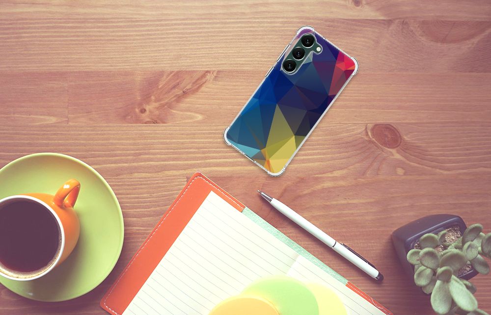 Ben je op zoek naar een uniek telefoonhoesje voor je Samsung Galaxy S23 Plus? Dan ben je bij B2C Telecom aan het juiste adres! Speciaal voor jou hebben we dit prachtige Polygon Dark design in onze collectie hoesjes opgenomen. Het design wordt bedrukt op een Shockproof Case en is gemaakt van flexibel rubber. Het hoesje is perfect voor de actieve smartphonegebruiker door de opstaande randen/hoeken. Denk aan mensen die veel sporten, reizen of wandelen en net iets meer zekerheid willen als het op hun geliefde telefoon aankomt. Het design wordt alleen aan de bovenkant van het hoesje bedrukt en de randen blijven transparant. Aan de zijkanten zijn uitsparingen gemaakt waardoor je met gemak alle knoppen en poorten kunt bedienen. Wij adviseren om dit hoesje in combinatie met een screenprotector te gebruiken voor een langere levensduur van je telefoon. Wil je dit hoesje nog iets extra's geven? Voeg dan gratis je naam of een quote toe! Is dit design hoesje toch niet helemaal wat je zocht? Ontwerp dan zelf een hoesje in ons ontwerpprogramma.