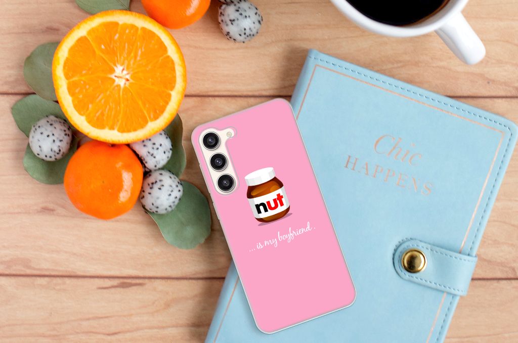 Hou je van chocoladepasta, dan is dit het perfecte Samsung Galaxy S23 Plus Siliconen Case voor jou. De chocoladepasta is enorm populair, dus is het niet zo heel gek dat je een ‘Nut Boyfriend’ tpu case in een roze kleur voorbij ziet komen in ons assortiment design hoesjes met illustraties. Dit is een zeer flexibel hoesje, dat altijd in je broekzak past. Alleen de bovenkant van dit hoesje wordt door ons bedrukt met de pasta, op zeer duurzame manier. Mensen die houden van de bekendste pasta van het moment, kiezen voor dit degelijke tpu hoesje. Er staan geen foto’s op de zijkanten van een tpu case. Wel kun je zelf een eigen tekst toevoegen.