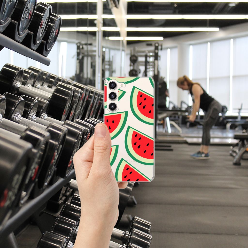 Watermeloenen zijn uitstekende dorstlessers, misschien dat je daarom juist in de zomermaanden extra enthousiast raakt van dit design hoesje Watermelons. Jij blijft gezond als je zo nu en dan een watermeloen neemt, jouw smartphone blijft in tact als je er deze Samsung Galaxy S23 Plus Siliconen Case omheen doet. Deze tpu case wordt alleen aan de bovenkant bedrukt met watermeloenen is zeer flexibel. De randen van het hoesje blijven transparant. Je kunt ook kiezen voor andere soorten fruit op je hoesje. Kijk maar eens naar onze andere design hoesjes op onze website.