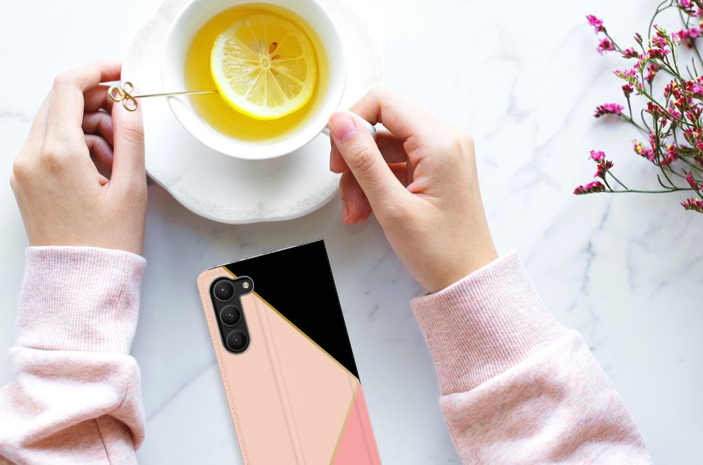 Samsung Galaxy S23 Plus Print Stand Case Zwart Roze Vormen