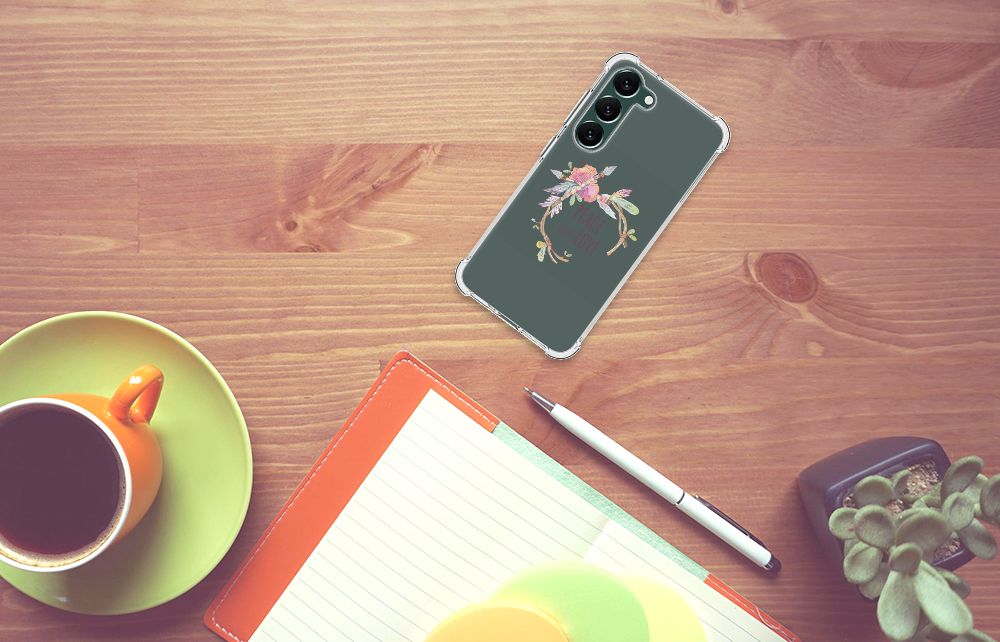 Ben je op zoek naar een uniek telefoonhoesje voor je Samsung Galaxy S23 Plus? Dan ben je bij B2C Telecom aan het juiste adres! Speciaal voor jou hebben we dit prachtige Boho Text design in onze collectie hoesjes opgenomen. Het design wordt bedrukt op een Stevig Bumper Hoesje en is gemaakt van flexibel rubber. Het hoesje is perfect voor de actieve smartphonegebruiker door de opstaande randen/hoeken. Denk aan mensen die veel sporten, reizen of wandelen en net iets meer zekerheid willen als het op hun geliefde telefoon aankomt. Het design wordt alleen aan de bovenkant van het hoesje bedrukt en de randen blijven transparant. Aan de zijkanten zijn uitsparingen gemaakt waardoor je met gemak alle knoppen en poorten kunt bedienen. Wij adviseren om dit hoesje in combinatie met een screenprotector te gebruiken voor een langere levensduur van je telefoon. Wil je dit hoesje nog iets extra's geven? Voeg dan gratis je naam of een quote toe! Is dit design hoesje toch niet helemaal wat je zocht? Ontwerp dan zelf een hoesje in ons ontwerpprogramma.
