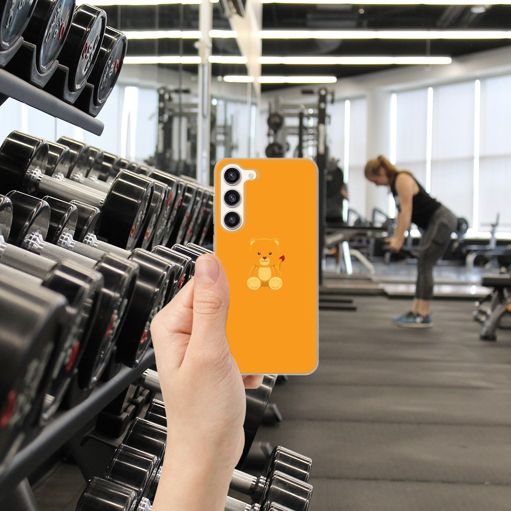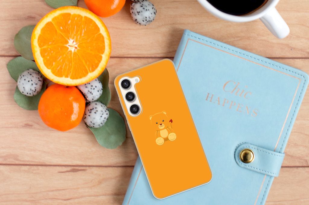 Dit vrolijke teddybeertje zou je het liefst willen knuffelen. Dat wordt lastig, op een telefoonhoesje. Maar dat betekent niet dat dit design niet evengoed onwijs schattig is. Het ontwerp is vanwege de oranje achtergrondkleur evengoed subtiel. Dit Baby Beer-design is perfect voor de knuffelberen onder ons. Dit design staat op een Telefoonhoesje met Naam voor je Samsung Galaxy S23 Plus. TPU is flexibel en onbreekbaar. Zo is je telefoon aan de achterkant en de randen heel goed beschermd. De case is aan de bovenkant bedrukt, de randen blijven transparant. Het TPU-hoesje is perfect te combineren met een screenprotector, zo zijn je telefoon en je beeldscherm perfect beschermd.