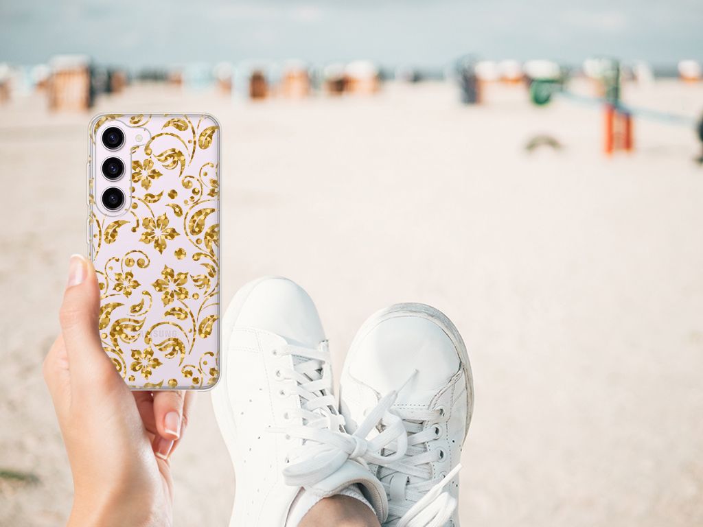 Ben je op zoek naar een uniek telefoonhoesje voor je Samsung Galaxy S23? Dan ben je bij B2C Telecom aan het juiste adres! Speciaal voor jou hebben we dit prachtige Gouden Bloemen design in onze collectie hoesjes opgenomen. Het design wordt bedrukt op een TPU Case en is gemaakt van flexibel rubber. Het design wordt alleen aan de bovenkant van het hoesje bedrukt en de randen blijven transparant. Aan de zijkanten zijn uitsparingen gemaakt waardoor je met gemak alle knoppen en poorten kunt bedienen. Wij adviseren om dit hoesje in combinatie met een screenprotector te gebruiken voor een langere levensduur van je telefoon. Wil je dit design hoesje nog iets extra's geven? Voeg dan gratis je naam of een quote toe! Is dit design hoesje toch niet helemaal wat je zocht? Ontwerp dan zelf een hoesje in ons ontwerpprogramma.