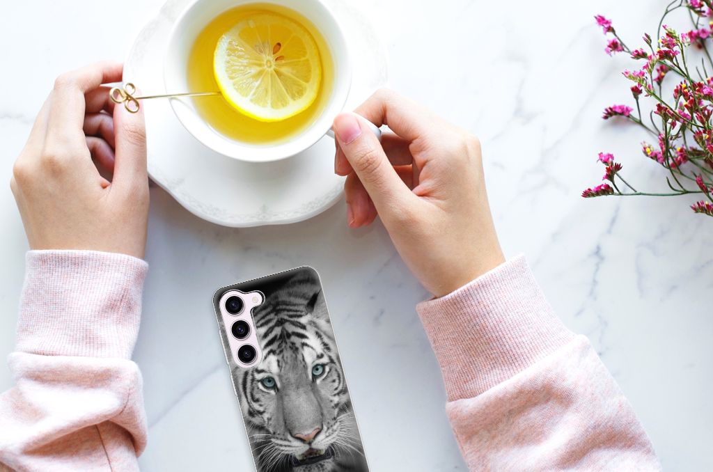 Omdat de Witte Tijger zo bijzonder is, zijn wij bereid deze voor zeer lage kosten op een tpu case te zetten. Dit kunnen we zo goedkoop doen omdat we het drukwerk in eigen beheer doen. Witte tijgers leefden lange tijd in de bossen van India, Bangladesh, Nepal, Bhutan en China en kunnen wel 257 kilo wegen. Dit zwaargewicht kunnen we bedrukken op verschillende soorten hoesjes, zoals deze tpu cases. Deze Samsung Galaxy S23 TPU Hoesje kan exclusief in het bezit van jou komen. Zeker als je er zelf nog unieke teksten en/of beelden aan toevoegt. Het tpu hoesje is zeer flexibel en wordt alleen aan de bovenzijde bedrukt. De randen van dit flexibele hoesje blijven doorzichtig. Tegenwoordig zijn witte tijgers alleen in gevangenschap te bewonderen. Jij zorgt voor een goede bescherming van je smartphone met dit design hoesje met witte tijger.