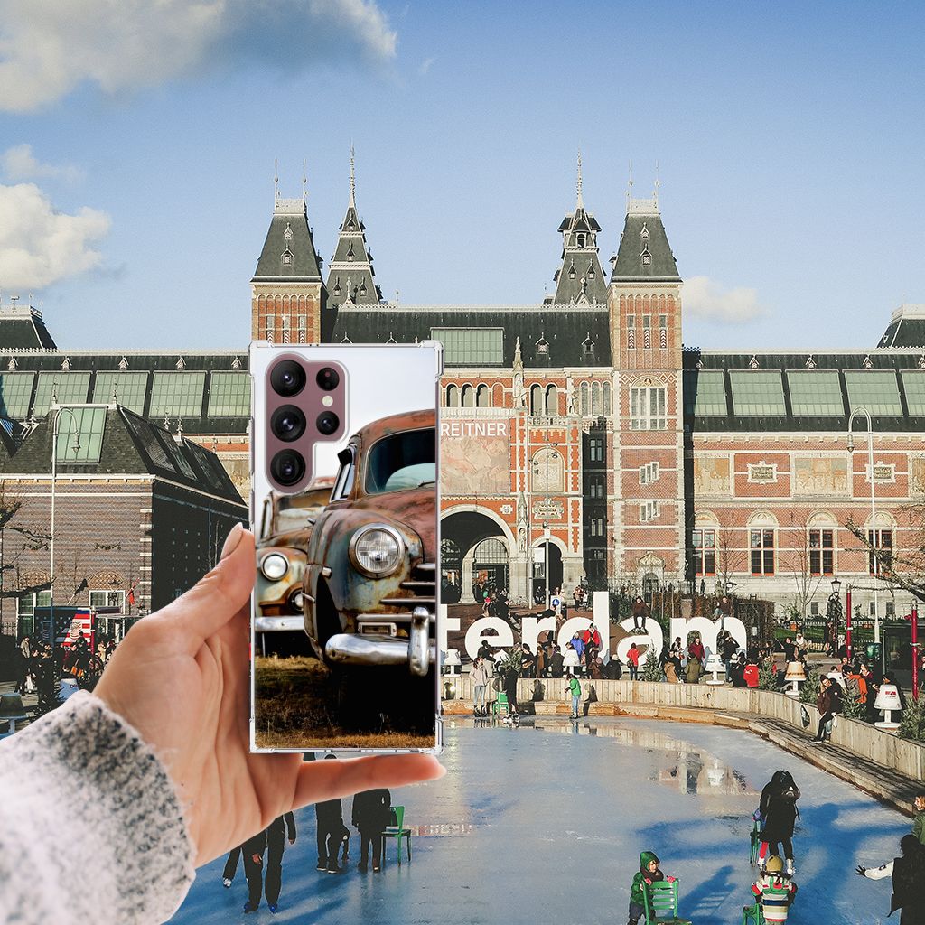 Ben je op zoek naar een uniek telefoonhoesje voor je Samsung Galaxy S23 Ultra? Dan ben je bij B2C Telecom aan het juiste adres! Speciaal voor jou hebben we dit prachtige Vintage Auto design in onze collectie hoesjes opgenomen. Het design wordt bedrukt op een Anti-shock Hoesje met foto en is gemaakt van flexibel rubber. Het hoesje is perfect voor de actieve smartphonegebruiker door de opstaande randen/hoeken. Denk aan mensen die veel sporten, reizen of wandelen en net iets meer zekerheid willen als het op hun geliefde telefoon aankomt. Het design wordt alleen aan de bovenkant van het hoesje bedrukt en de randen blijven transparant. Aan de zijkanten zijn uitsparingen gemaakt waardoor je met gemak alle knoppen en poorten kunt bedienen. Wij adviseren om dit hoesje in combinatie met een screenprotector te gebruiken voor een langere levensduur van je telefoon. Wil je dit hoesje nog iets extra's geven? Voeg dan gratis je naam of een quote toe! Is dit design hoesje toch niet helemaal wat je zocht? Ontwerp dan zelf een hoesje in ons ontwerpprogramma.