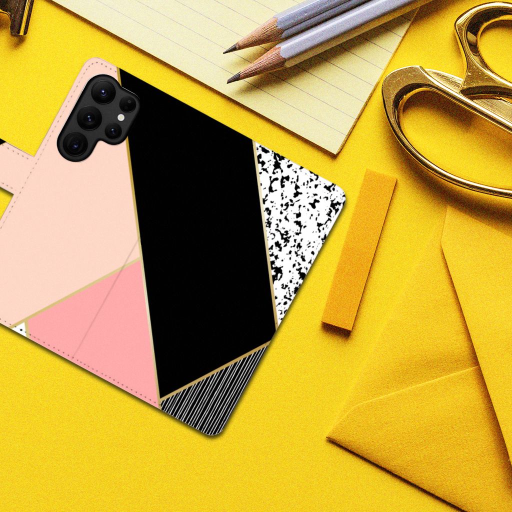 Samsung Galaxy S23 Ultra Bookcase met ruimte voor 3 pasjes Zwart Roze Vormen