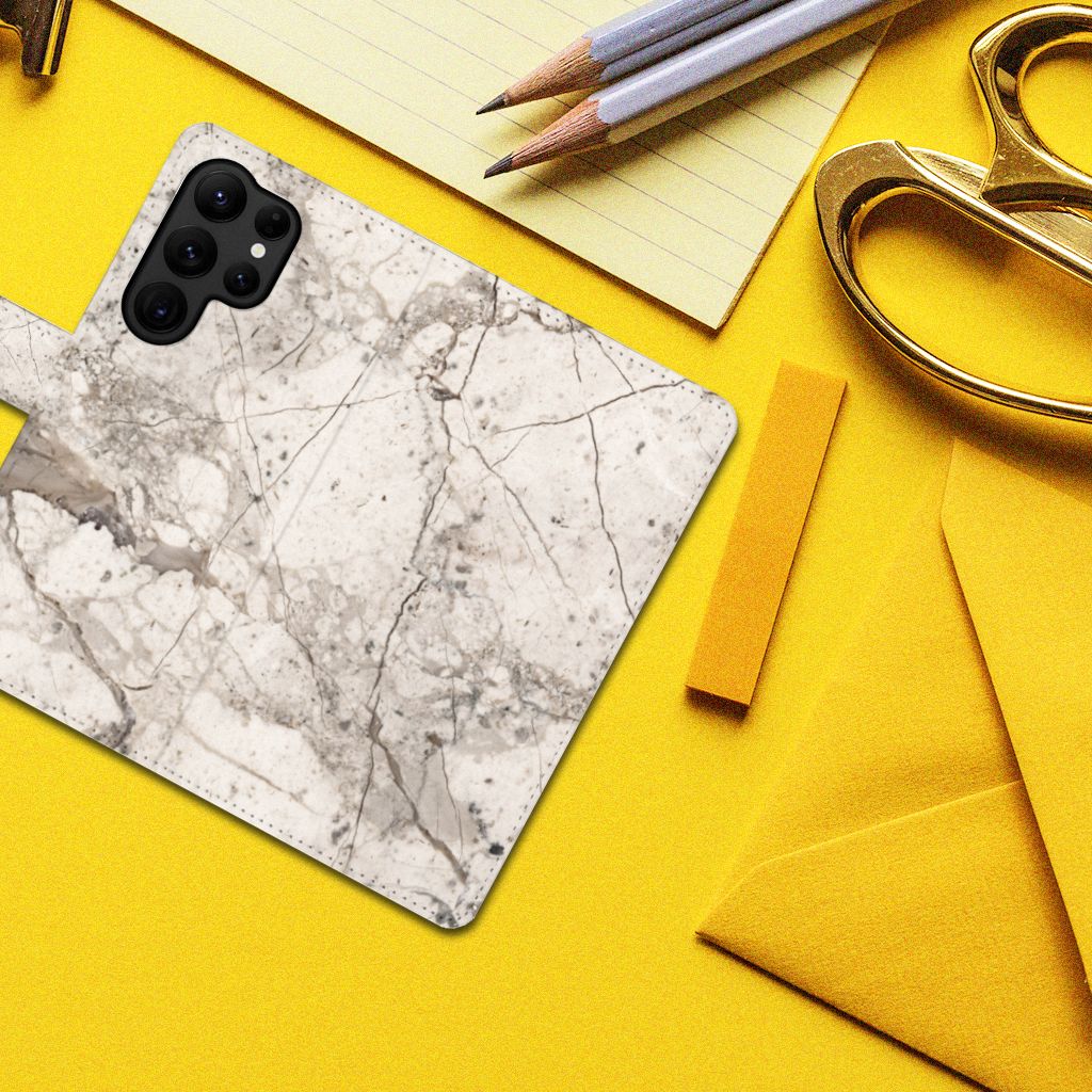 Samsung Galaxy S23 Ultra Bookcase met pasjes Marmer Beige