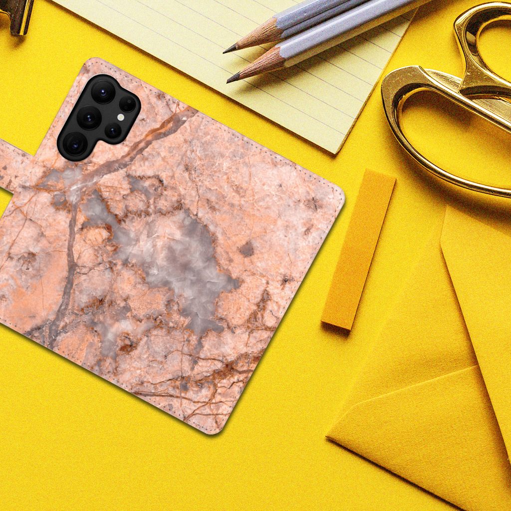 Samsung Galaxy S23 Ultra Bookcase met pasjes Marmer Oranje